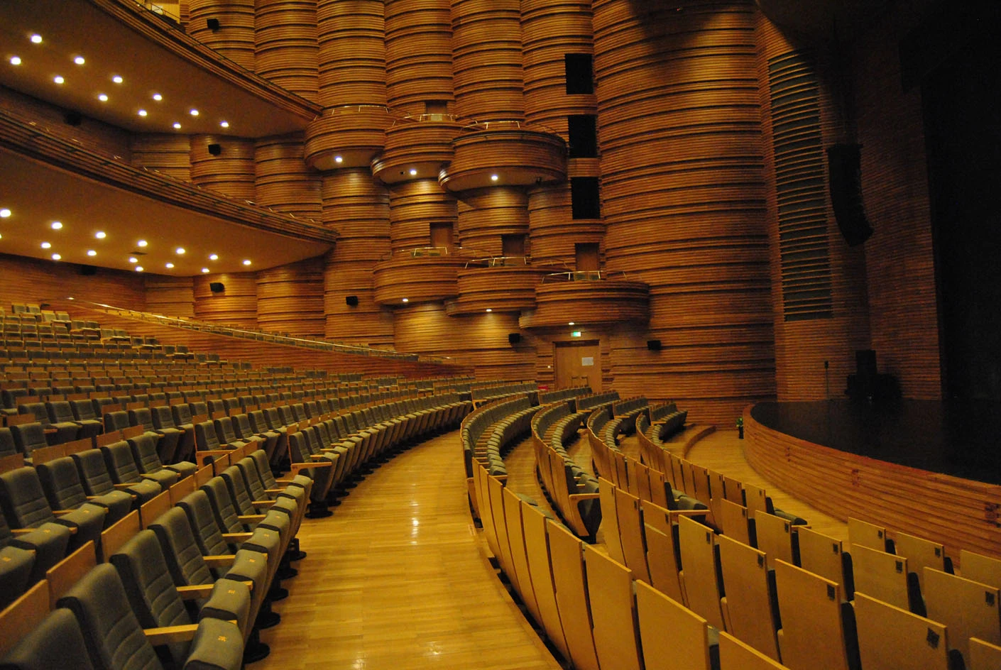 上海保利大剧院大剧场坐落于上海市嘉定新城核心区域的白银路159号,面朝风景如画的远香湖,是一座集建筑艺术与表演艺术于一体的文化地标。剧院由世界著名建筑大师、普利兹克奖得主安藤忠雄先生担纲设计,这也是他在中国设计的首座大型文化设施。剧院整体建筑面积达5.6万平方米,总投资约7亿元人民币,于2014年9月30日正式投入使用。大剧场作为剧院的核心演出场馆,以其卓越的建筑设计和先进的设施设备闻名于世。安藤忠雄先生以"万花筒"为设计理念,巧妙运用水、风、光等自然元素,通过简洁的几何造型与自然环境完美融合。建筑外立面采用清水混凝土构筑,配以通透的玻璃幕墙,营造出丰富的光影效果。整个建筑犹如一个精美的艺术品,与远香湖的湖光水色相映成趣,成为上海西部地区最具特色的文化地标。大剧场内部空间设计同样令人叹为观止。观众厅采用独特的木质结构,上万块经过特殊防火处理的松木集成材料以不同形态精心拼接,不仅营造出温馨典雅的观演氛围,更形成了一个天然的"声学乐器"。这些木质构件经过精密计算和布置,能够将声音均匀地传递到剧院的每个角落,为观众带来无与伦比的听觉享受。观众席共设1466个座位,采用三层式布局:一层756座,二层341座,三层246座,另设有4个VIP包厢。所有座椅均采用符合人体工学的设计,选用高档织物包裹,确保观众在长时间观演时仍能保持舒适。