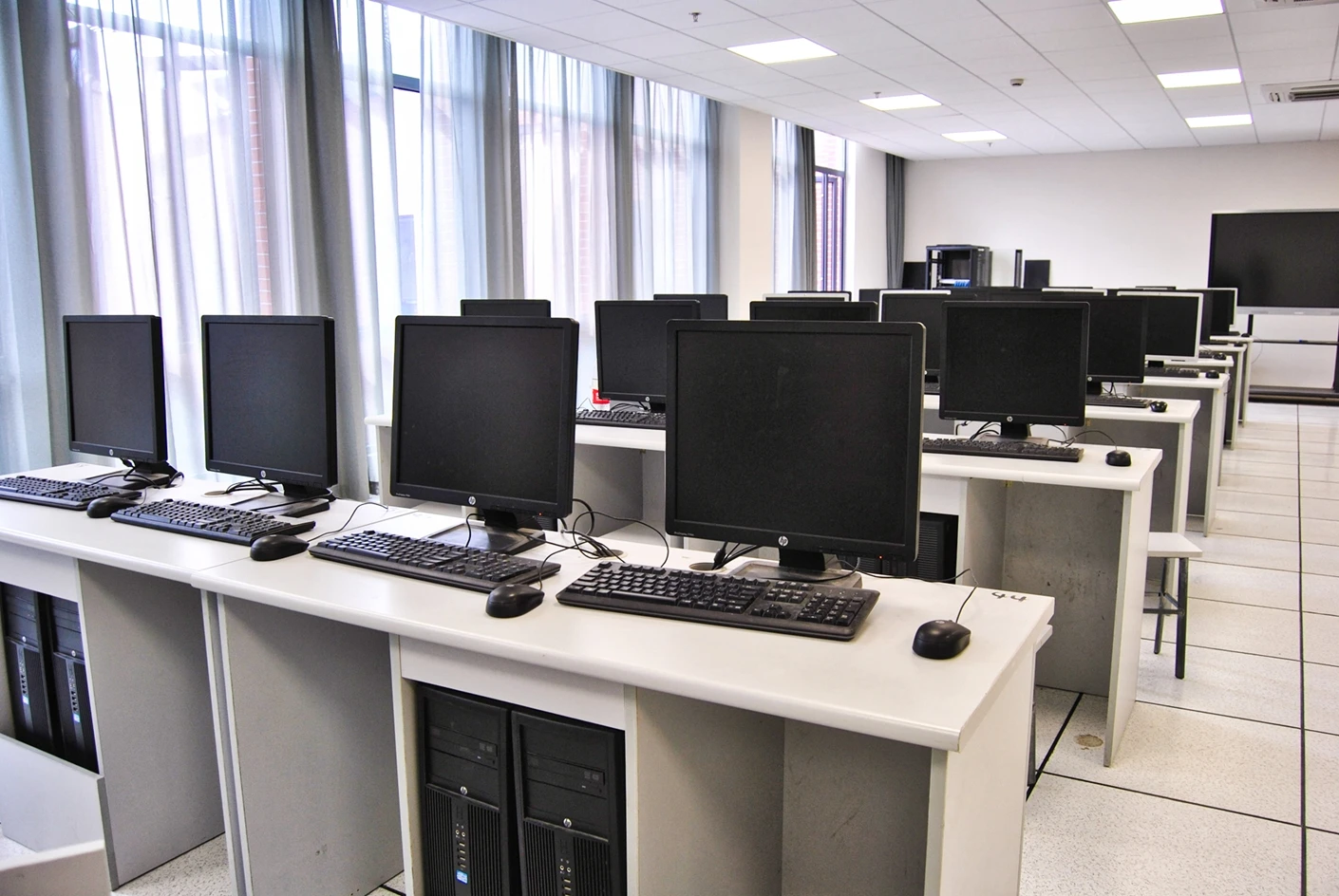 上海东海职业技术学院机房教室坐落于学校主教学楼,是校内规模化、标准化的计算机教学与实训场地,整体规划布局科学,硬件配置统一规范,成为学校开展信息技术类教学、技能培训与考核认证的重要载体。机房教室采用标准化布局设计,单间教室设置8排机位,每排规划8个独立机位,单间可同时满足64人同步开展教学、实训与考试活动,全校共配备20个标准化机房教室,整体可容纳超千名学生同时使用,规模化的场地配置既能够满足全校各专业日常计算机公共课、专业必修课的教学需求,也能承接校内大型技能实训、集中考核认证与校外各类培训考试活动,彻底解决了大规模计算机教学与考核的场地需求。每个独立机位均配备高性能计算机、高清显示屏幕、标准键盘鼠标等全套设备,设备配置贴合职业教育教学与实训需求,能够流畅运行办公软件、专业设计软件、编程开发软件、考试系统等各类教学与考试所需程序,满足不同专业、不同场景的使用需求。