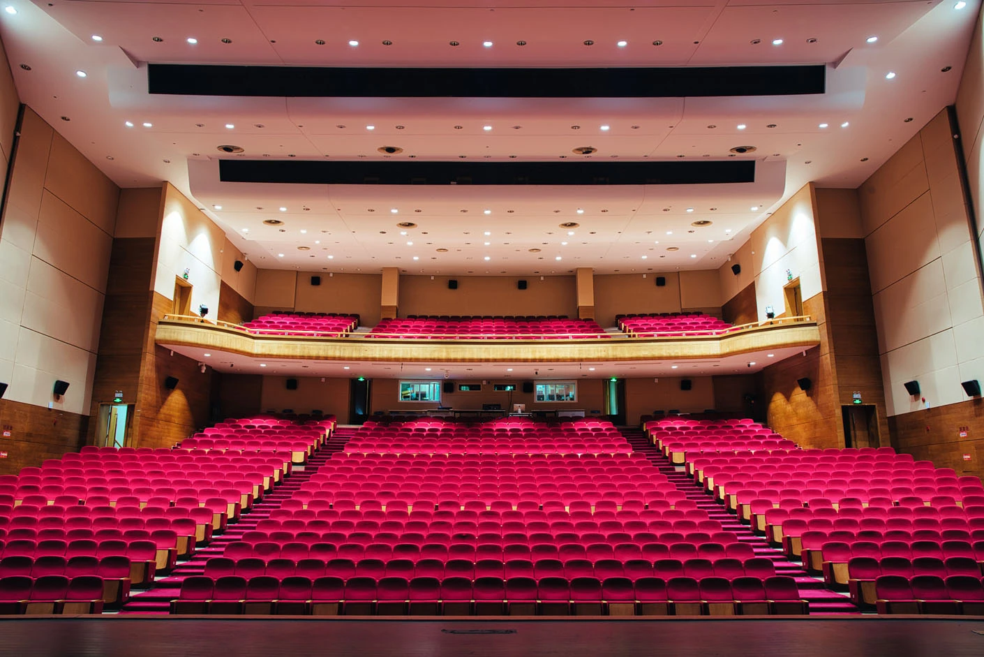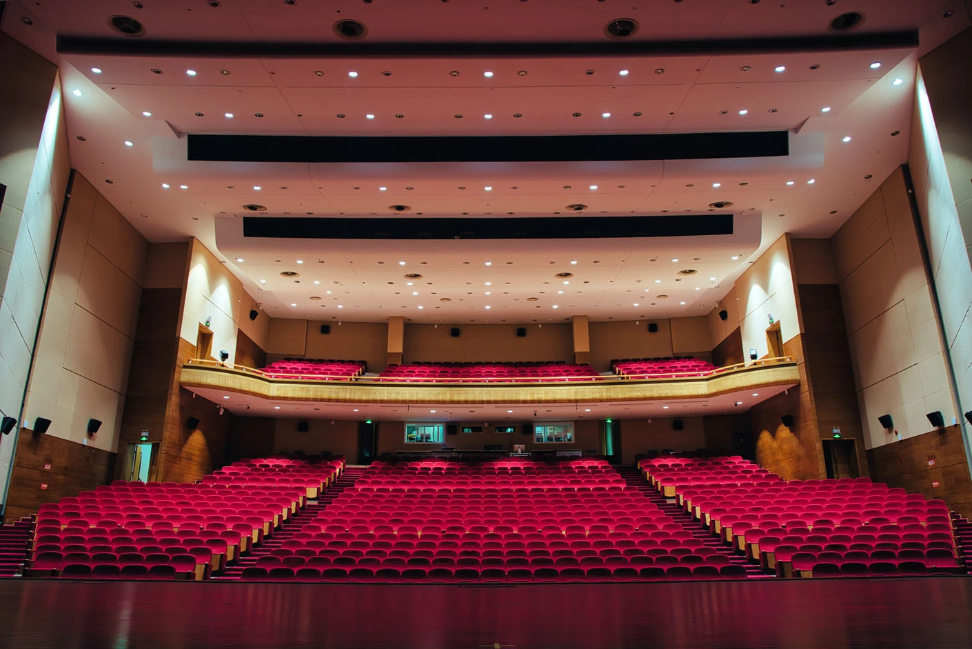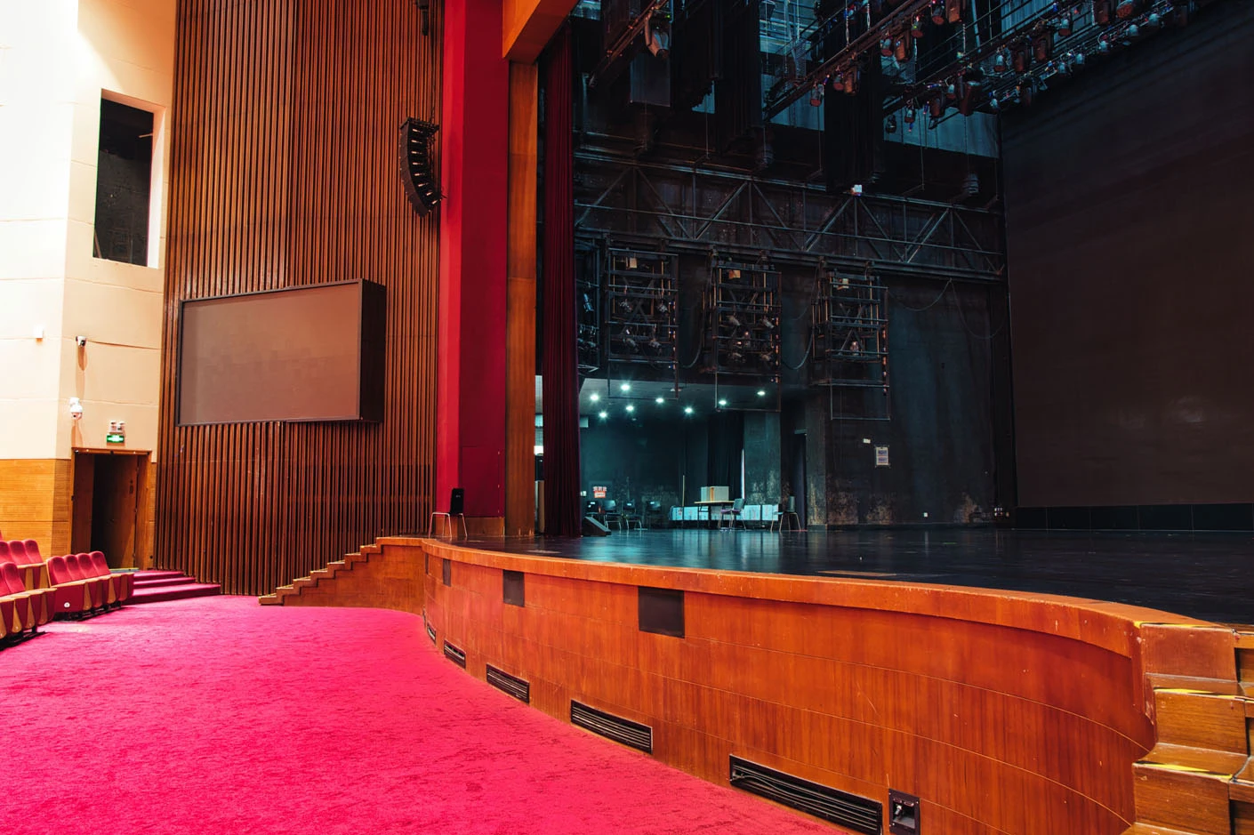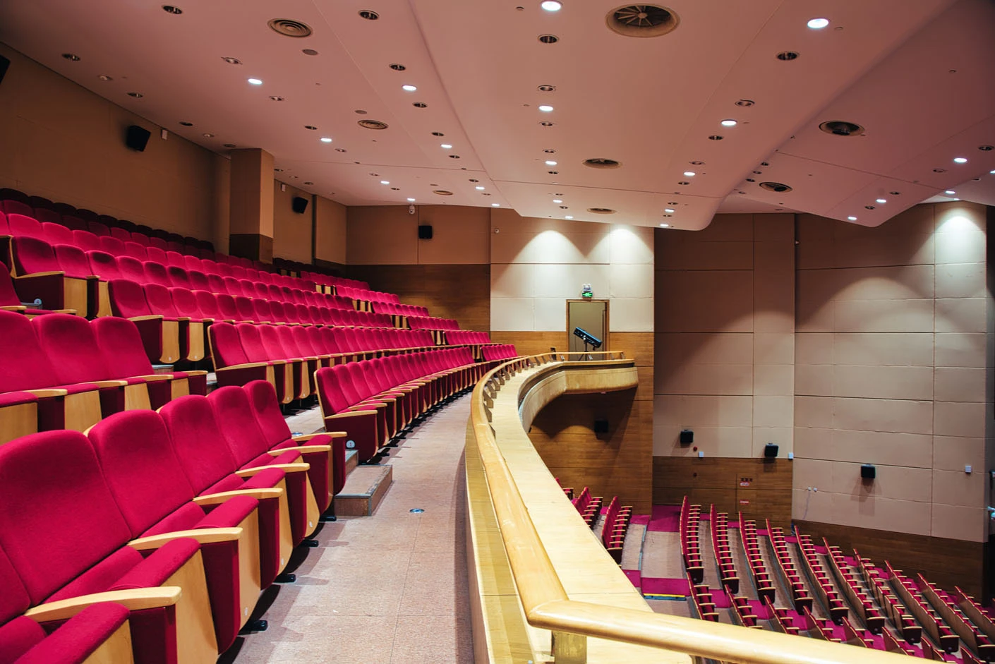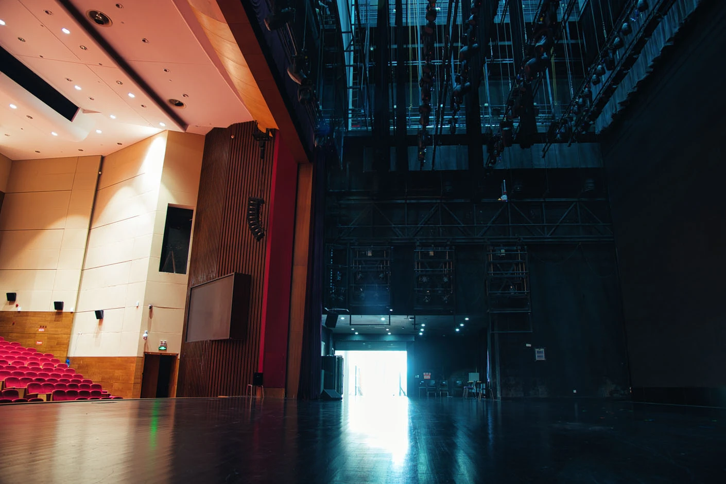 剧场内部遵循专业剧场标准打造,整体空间布局科学合理,声学环境经过专业调试,音质通透均衡,可充分满足话剧、音乐会、歌舞剧等不同艺术形式的听觉呈现需求。舞台上方配备先进的灯光升降设备,搭载全套专业灯光音响系统,可精准营造多元舞台氛围,保障演出效果的完美呈现。同时,剧场配备两架大型多媒体投影设备、专业射灯以及中央空调系统,从视觉、听觉、体感等多方面,为各类演出与活动提供全方位、高品质的技术支撑。