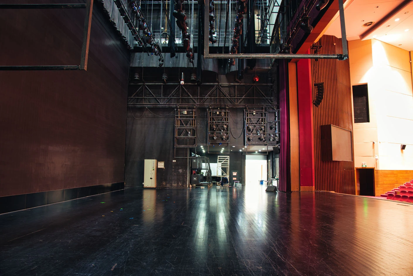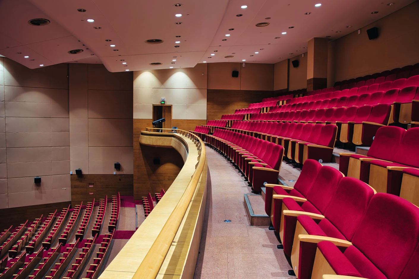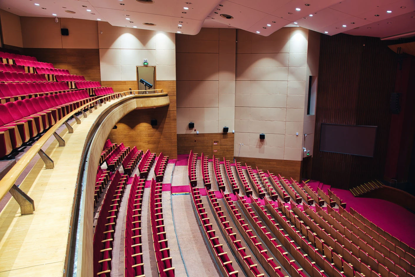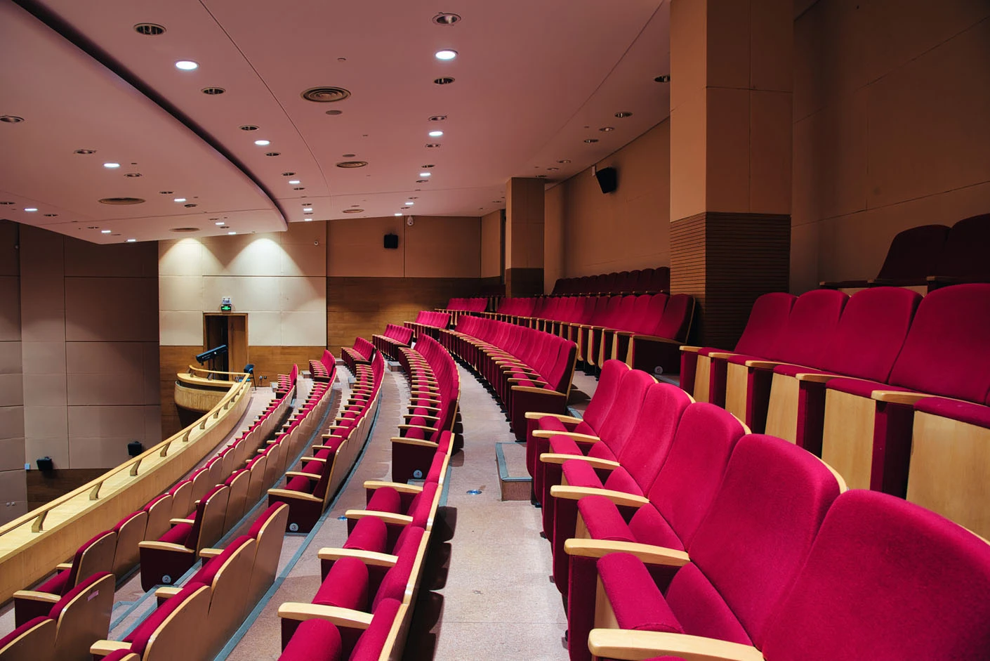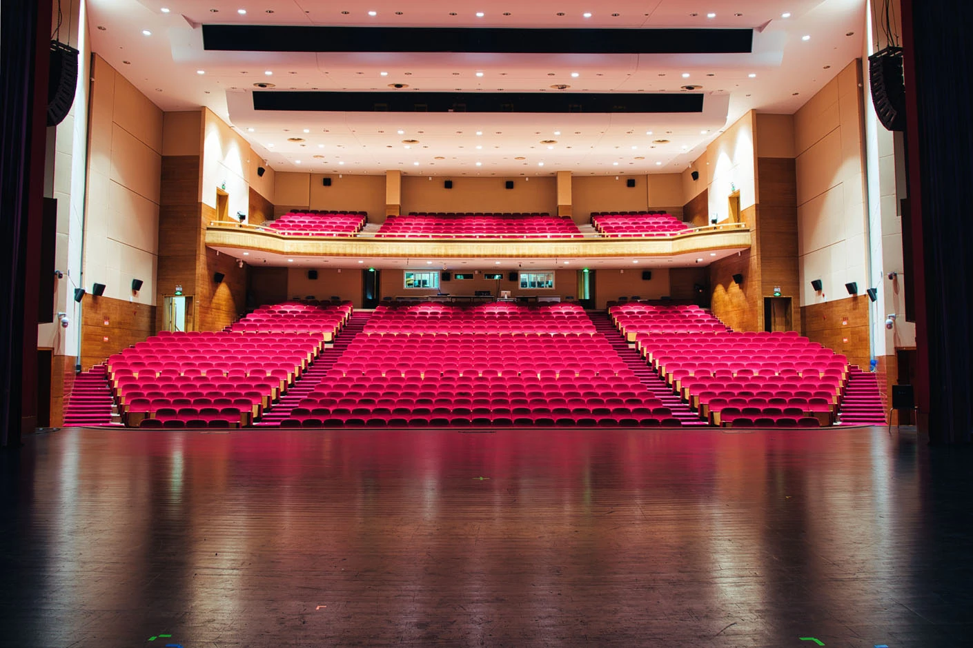 剧场内部遵循专业剧场标准打造,整体空间布局科学合理,声学环境经过专业调试,音质通透均衡,可充分满足话剧、音乐会、歌舞剧等不同艺术形式的听觉呈现需求。舞台上方配备先进的灯光升降设备,搭载全套专业灯光音响系统,可精准营造多元舞台氛围,保障演出效果的完美呈现。同时,剧场配备两架大型多媒体投影设备、专业射灯以及中央空调系统,从视觉、听觉、体感等多方面,为各类演出与活动提供全方位、高品质的技术支撑。