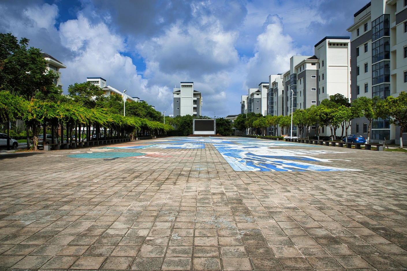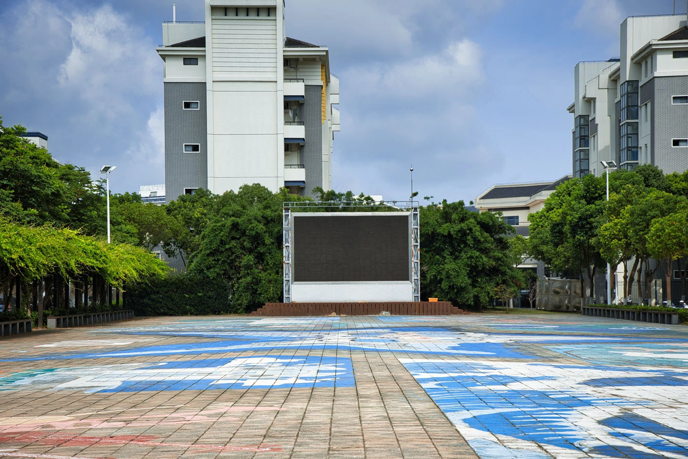 海星广场以极具代表性的海洋生物“海星”命名,巧妙呼应学校鲜明的海洋办学特色,成为校园内极具辨识度的文化地标。广场占地面积约800平方米,采用开放式整体设计,空间开阔规整,布局科学合理,能够满足大规模人群聚集与多元活动开展需求。场地配套专属固定舞台,为各类文艺演出、主题发布、仪式庆典等活动提供了专业的展示平台,同时配备完善的电力接口与标准化帐篷搭设条件,从硬件层面为各类户外活动的顺利举办提供充分的便利与保障。