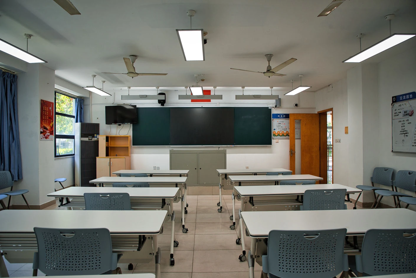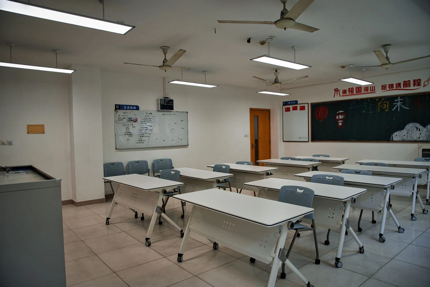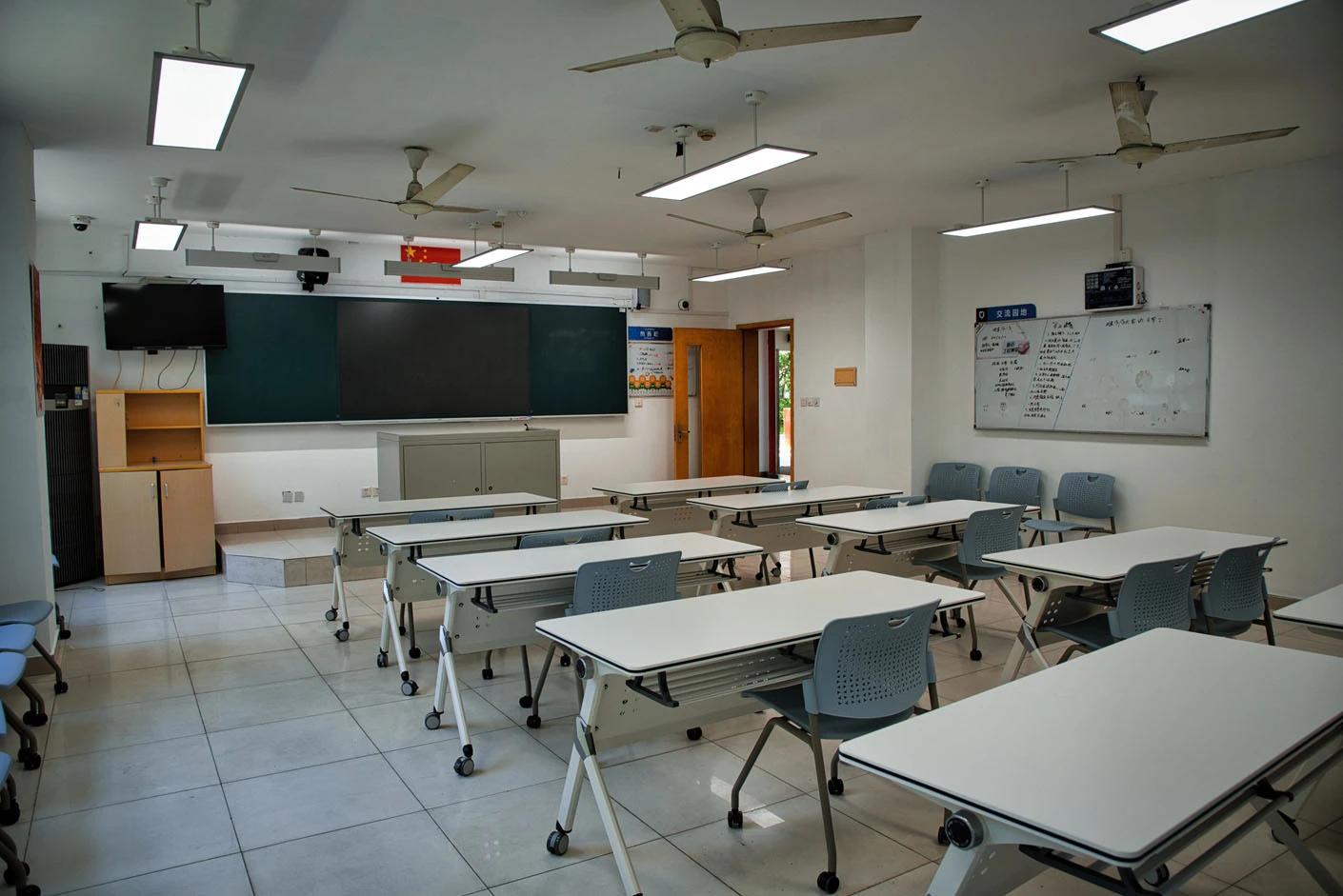 教室同步配备完善的教学辅助设施,传统书写黑板与现代多媒体设备相辅相成,兼顾传统板书与数字化教学的双重需求;全场配置空调与风扇双重温控系统,可根据季节与人数灵活调节,营造恒温、舒适、宜人的学习环境。作为精品小型教学场地,空间规划精致合理,采光充足、隔音良好,有效减少外界干扰,能够快速营造专注、高效的学习氛围,尤其适合开展需要深度交流、精细指导、互动研讨的小班化教学活动。