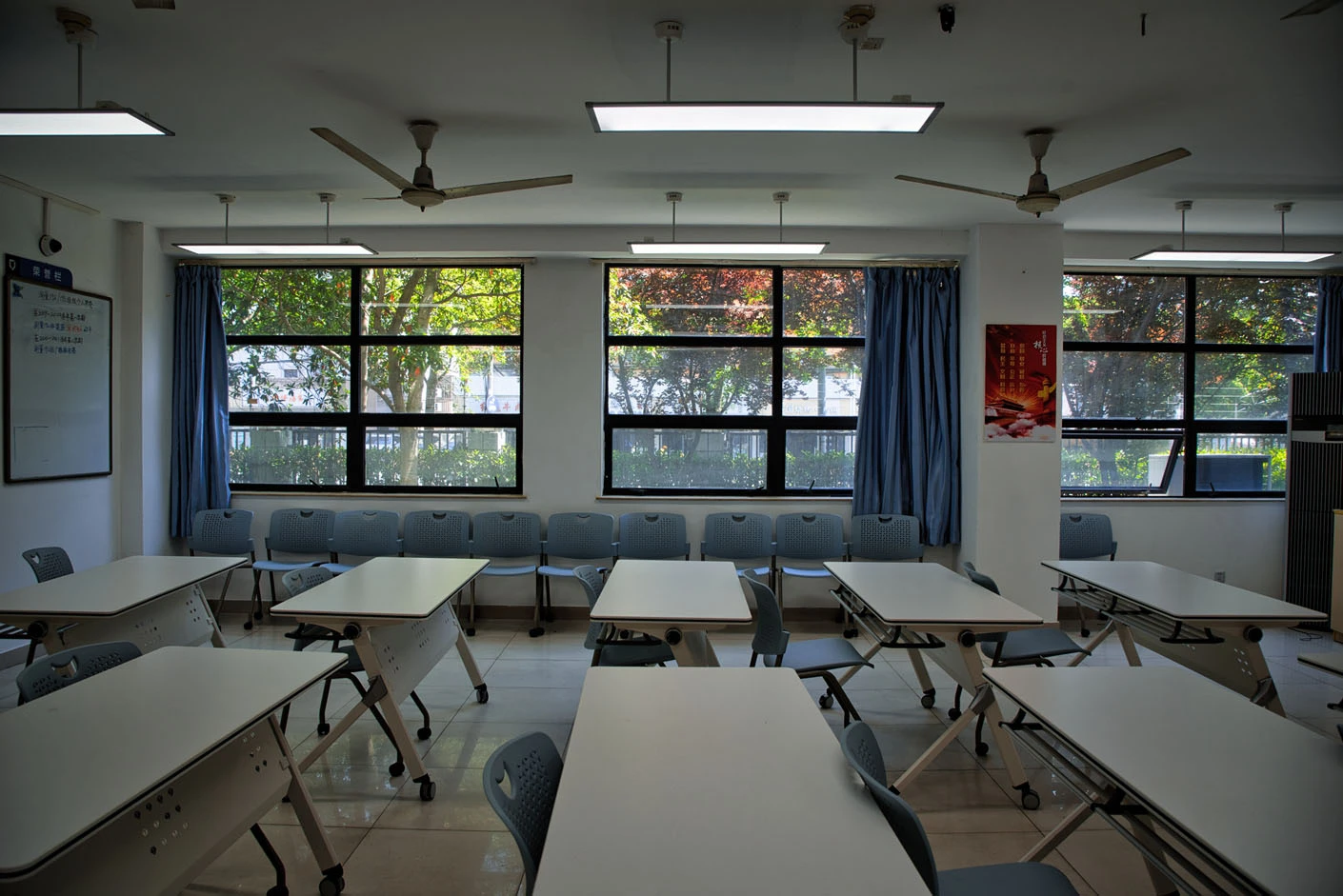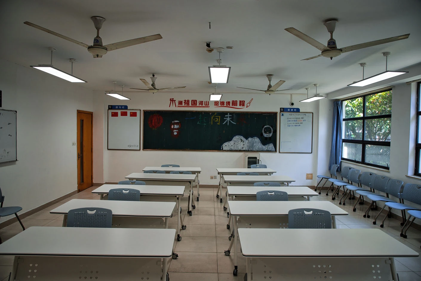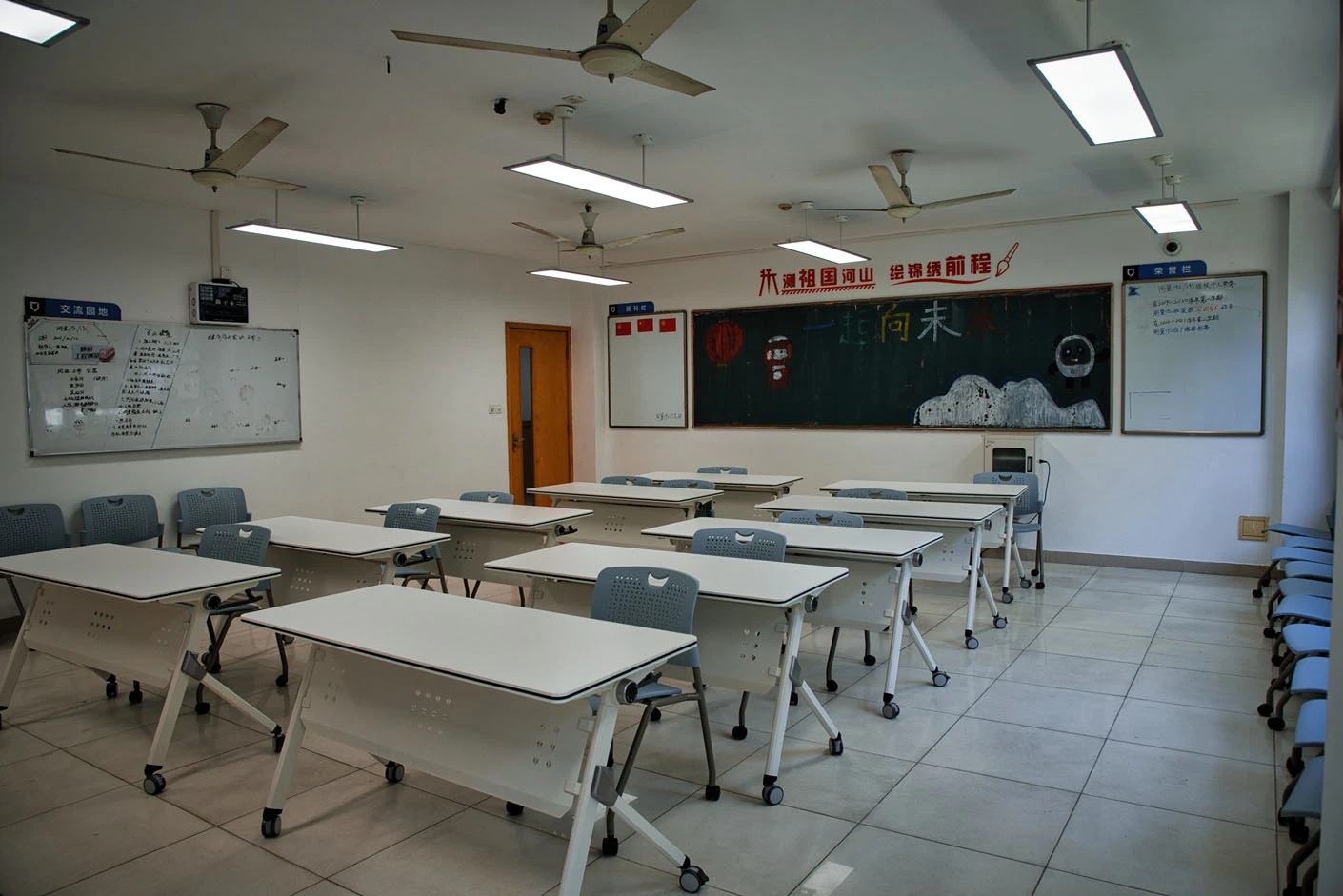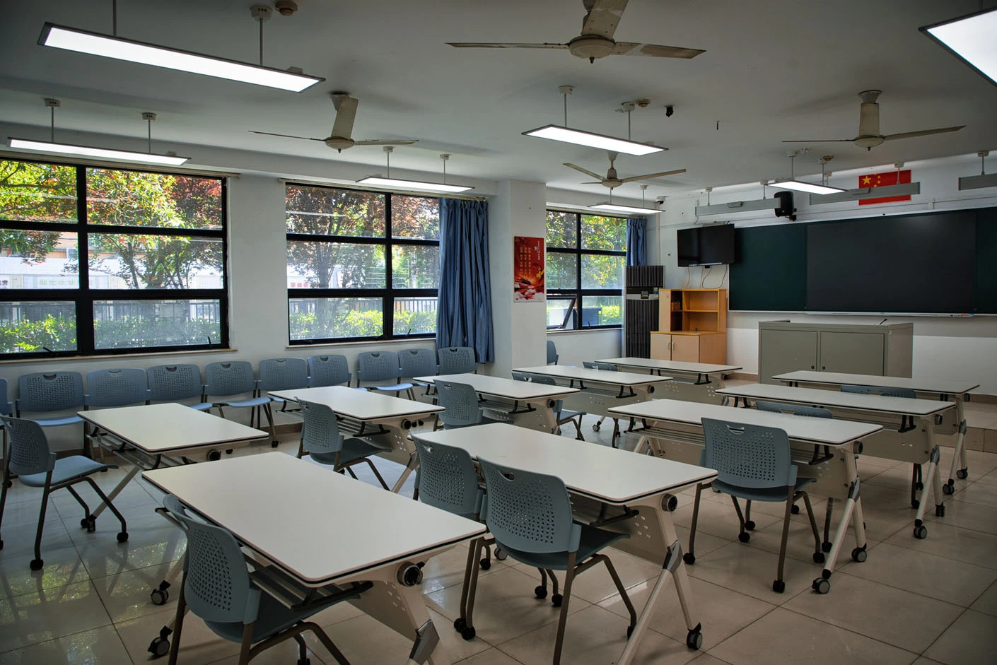 教室同步配备完善的教学辅助设施,传统书写黑板与现代多媒体设备相辅相成,兼顾传统板书与数字化教学的双重需求;全场配置空调与风扇双重温控系统,可根据季节与人数灵活调节,营造恒温、舒适、宜人的学习环境。作为精品小型教学场地,空间规划精致合理,采光充足、隔音良好,有效减少外界干扰,能够快速营造专注、高效的学习氛围,尤其适合开展需要深度交流、精细指导、互动研讨的小班化教学活动。