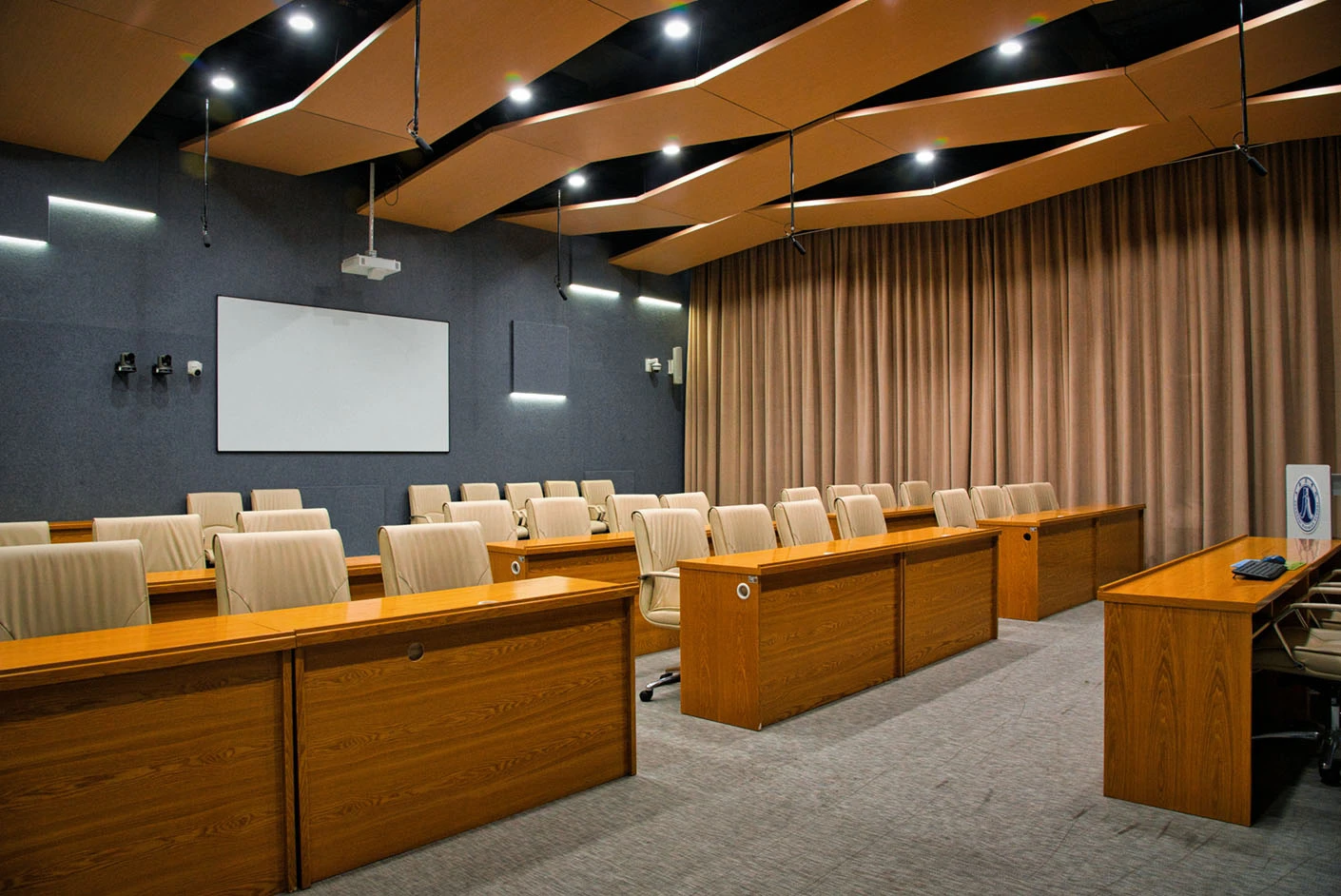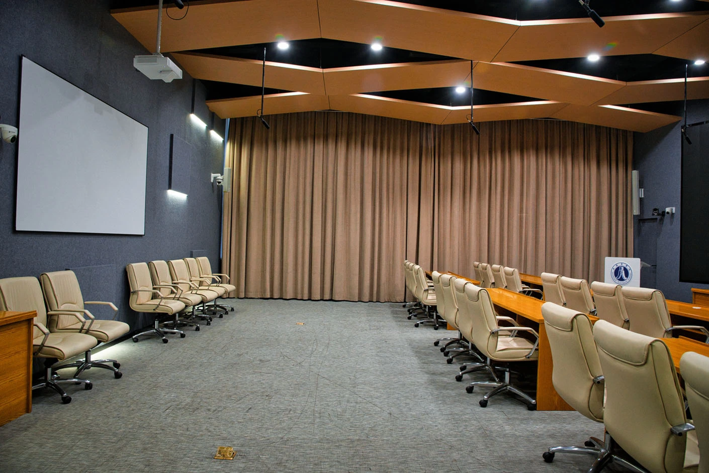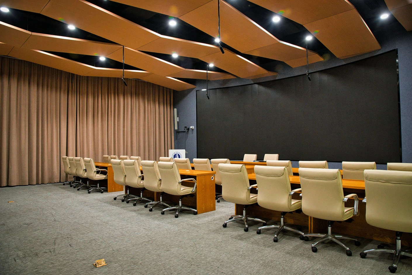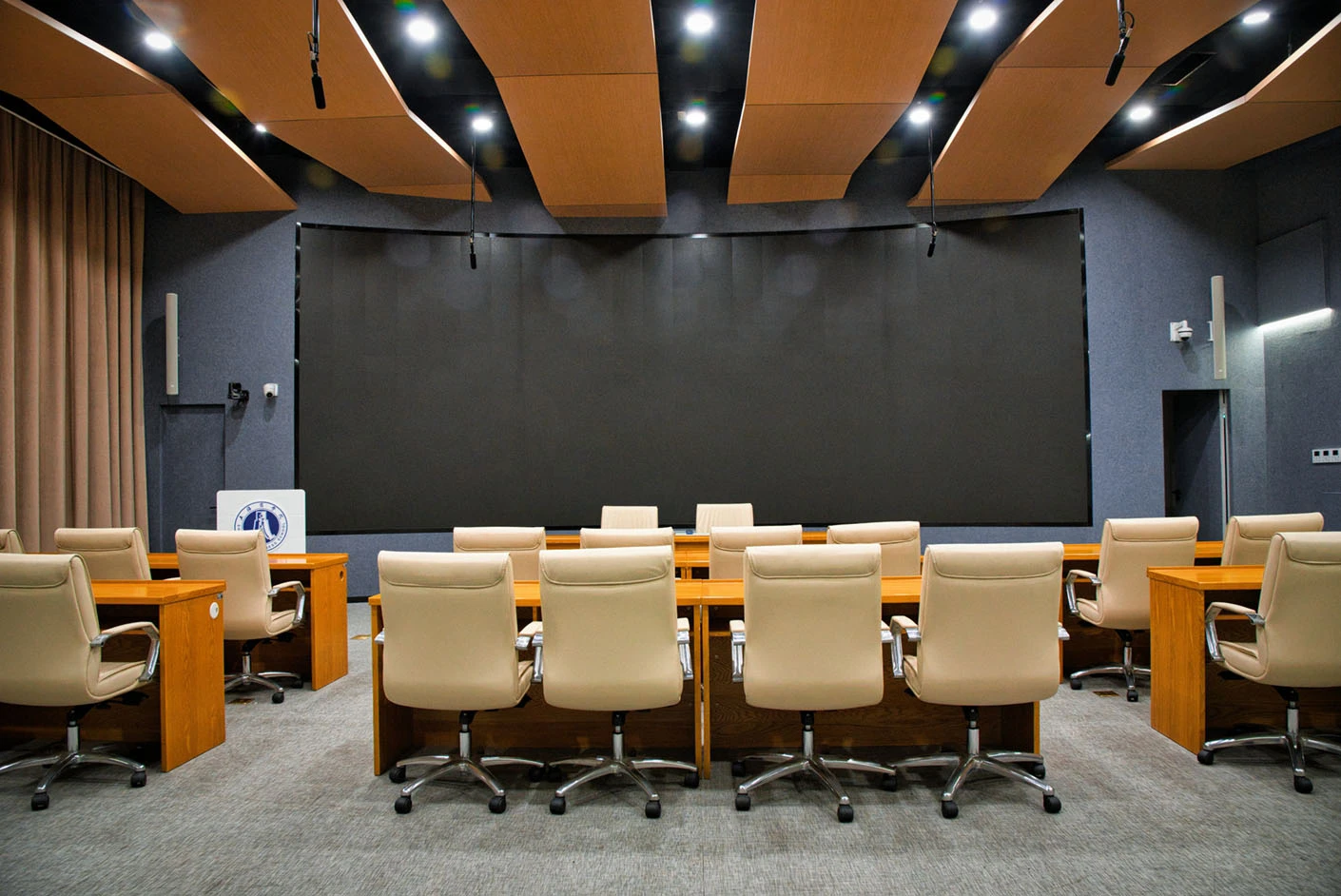 112报告厅采用精致专业的空间设计,整体氛围庄重典雅,契合高端会议与商务活动的品质需求。场地配备24+12座灵活布局,标准配置为2排×12座,可根据活动规模与形式需求扩展至3排,从容适配不同人数的会议场景。场内搭载高清LED大屏、专业音响系统、桌麦、吊麦及白板等完善设备,全方位保障音频播放、画面展示与现场互动效果,确保会议活动的专业品质。精心设计的2人座演讲台兼顾实用性与仪式感,搭配稳定高效的中央空调系统,全程营造舒适宜人、温度适宜的会议环境,让与会者专注投入交流。
