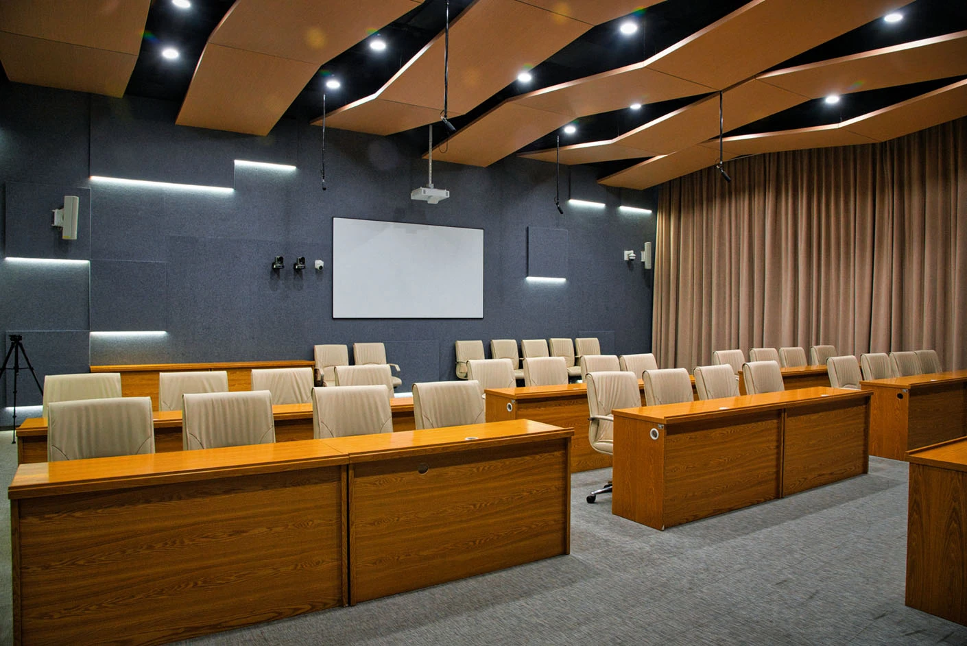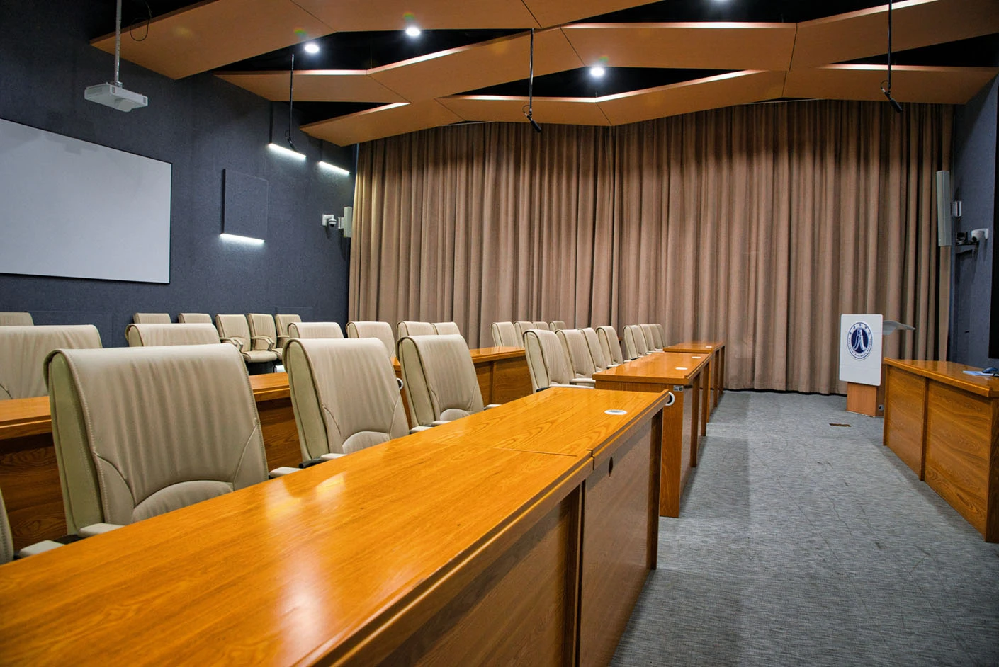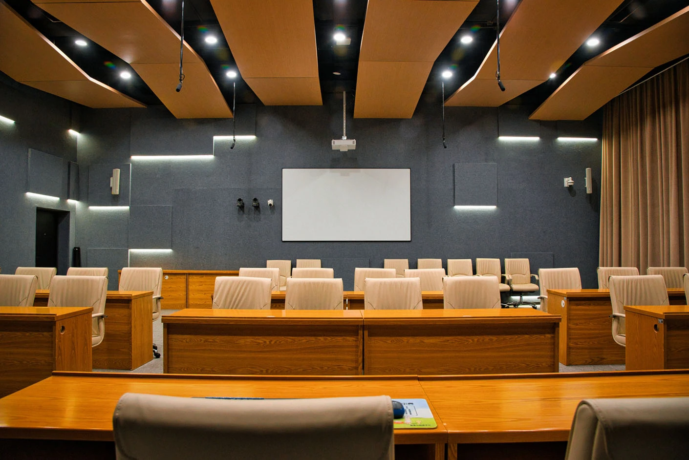 112报告厅采用精致专业的空间设计,整体氛围庄重典雅,契合高端会议与商务活动的品质需求。场地配备24+12座灵活布局,标准配置为2排×12座,可根据活动规模与形式需求扩展至3排,从容适配不同人数的会议场景。场内搭载高清LED大屏、专业音响系统、桌麦、吊麦及白板等完善设备,全方位保障音频播放、画面展示与现场互动效果,确保会议活动的专业品质。精心设计的2人座演讲台兼顾实用性与仪式感,搭配稳定高效的中央空调系统,全程营造舒适宜人、温度适宜的会议环境,让与会者专注投入交流。