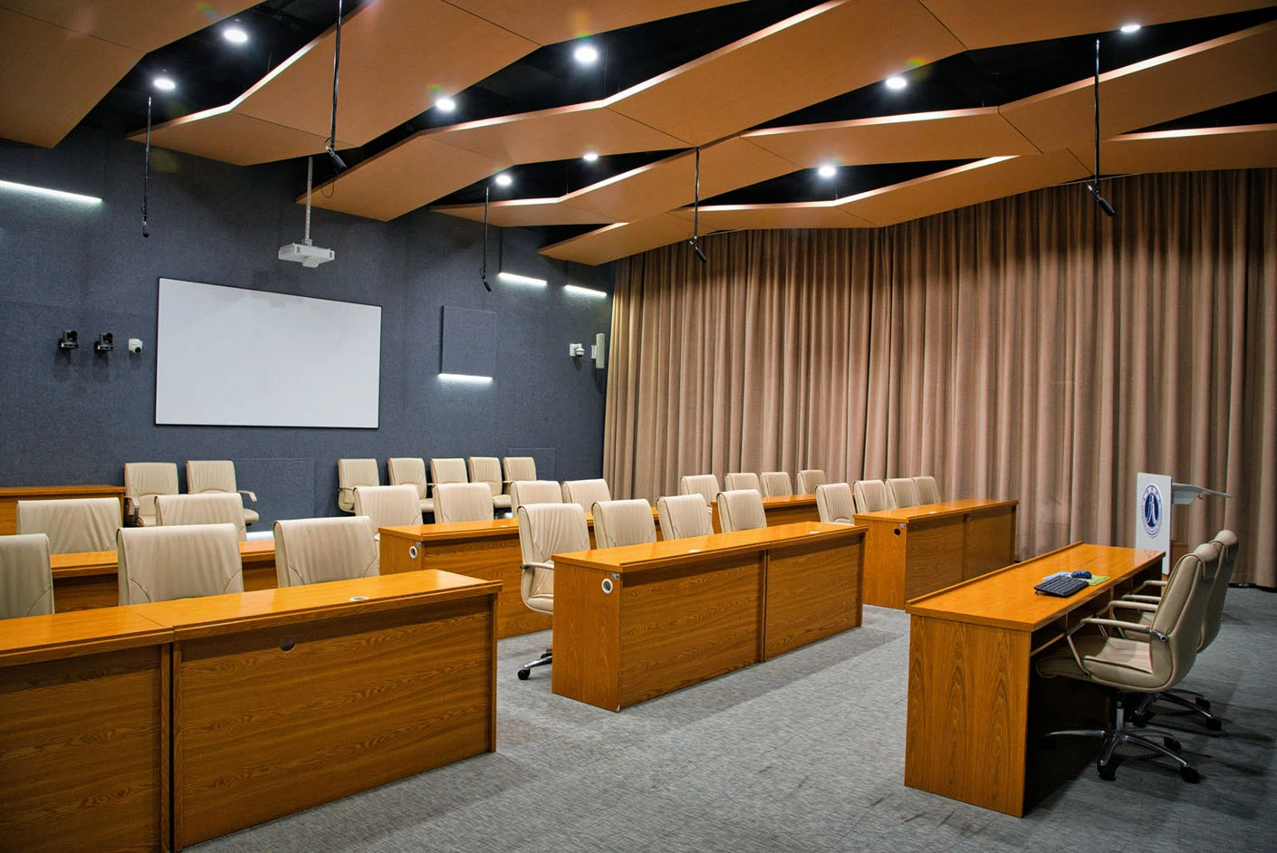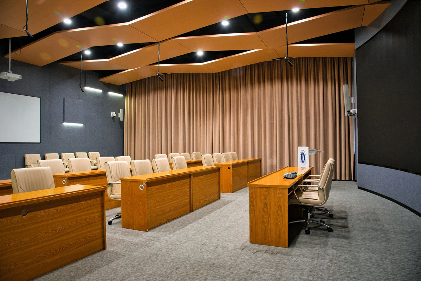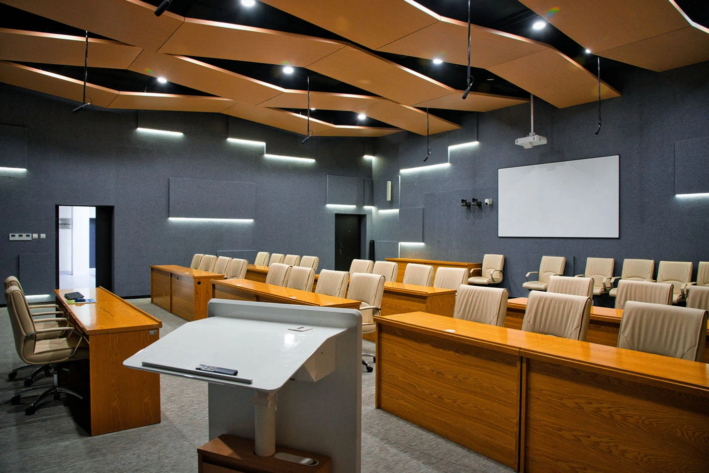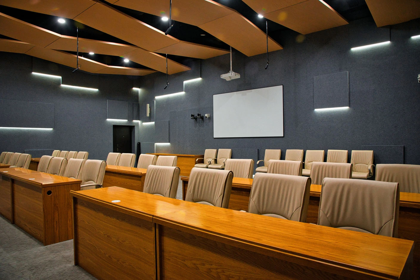 112报告厅采用精致专业的空间设计,整体氛围庄重典雅,契合高端会议与商务活动的品质需求。场地配备24+12座灵活布局,标准配置为2排×12座,可根据活动规模与形式需求扩展至3排,从容适配不同人数的会议场景。场内搭载高清LED大屏、专业音响系统、桌麦、吊麦及白板等完善设备,全方位保障音频播放、画面展示与现场互动效果,确保会议活动的专业品质。精心设计的2人座演讲台兼顾实用性与仪式感,搭配稳定高效的中央空调系统,全程营造舒适宜人、温度适宜的会议环境,让与会者专注投入交流。