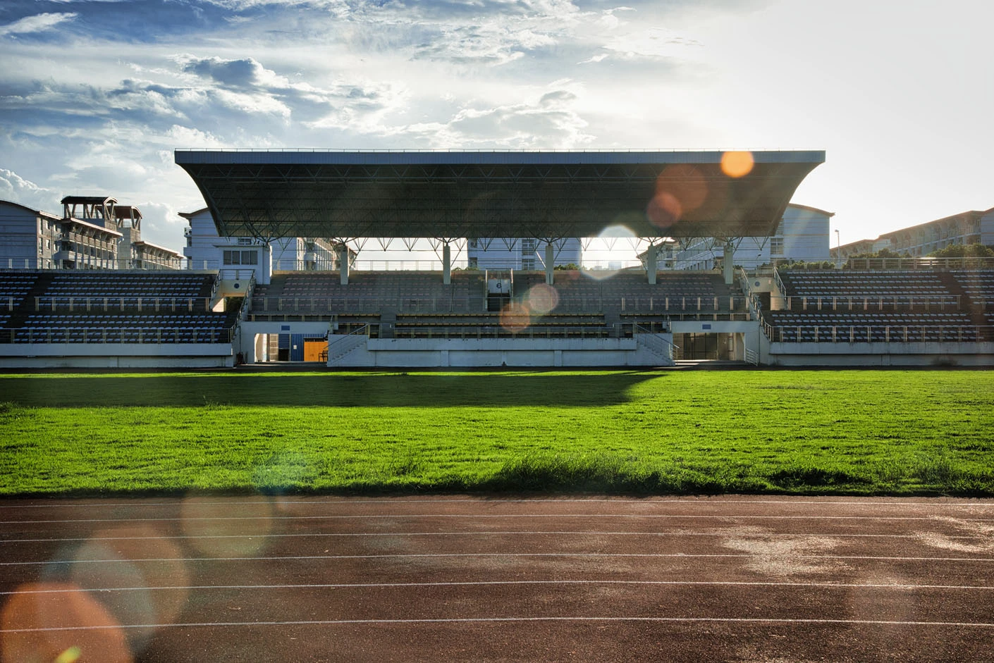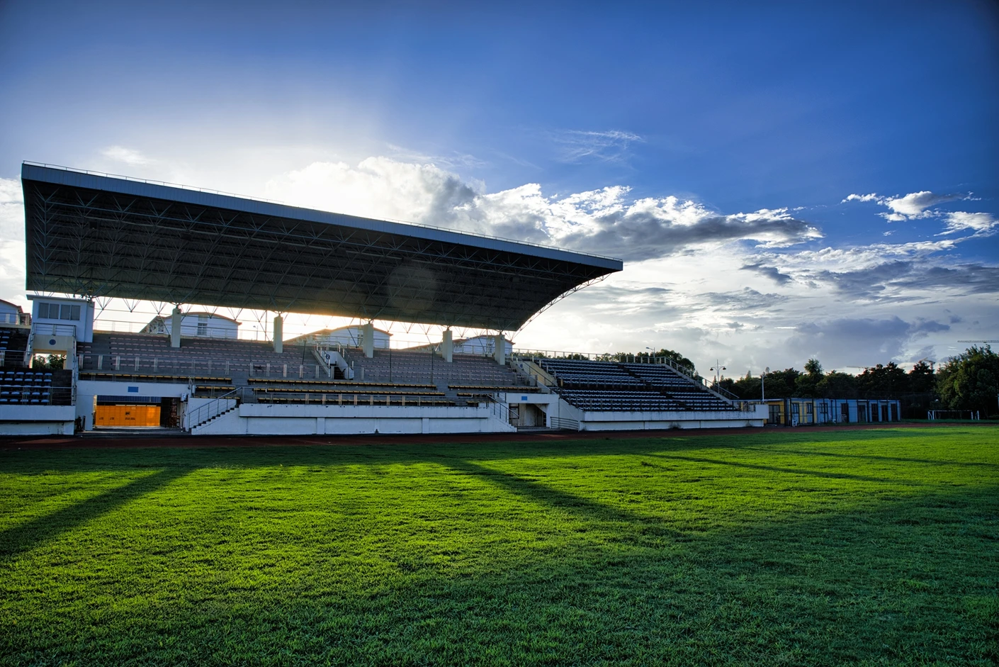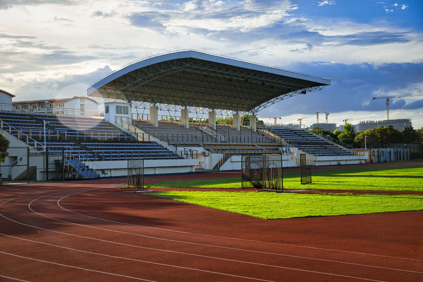 体育场核心配置对标专业赛事标准,涵盖8跑道标准化田径场与标准真草草坪足球场,田径场跑道采用高品质塑胶材质,弹性适中、防滑耐磨,能有效降低运动损伤风险;真草草坪养护精良,触感柔软且排水性优异,保障全天候运动需求。场地配套设施完备,设有1471座观众席与带遮阳棚的主席台,满足大型活动观赛与仪式举办需求;国旗旗杆庄严肃穆,沙坑等田径器材配置齐全,为跳远、三级跳等项目提供专业支撑。
