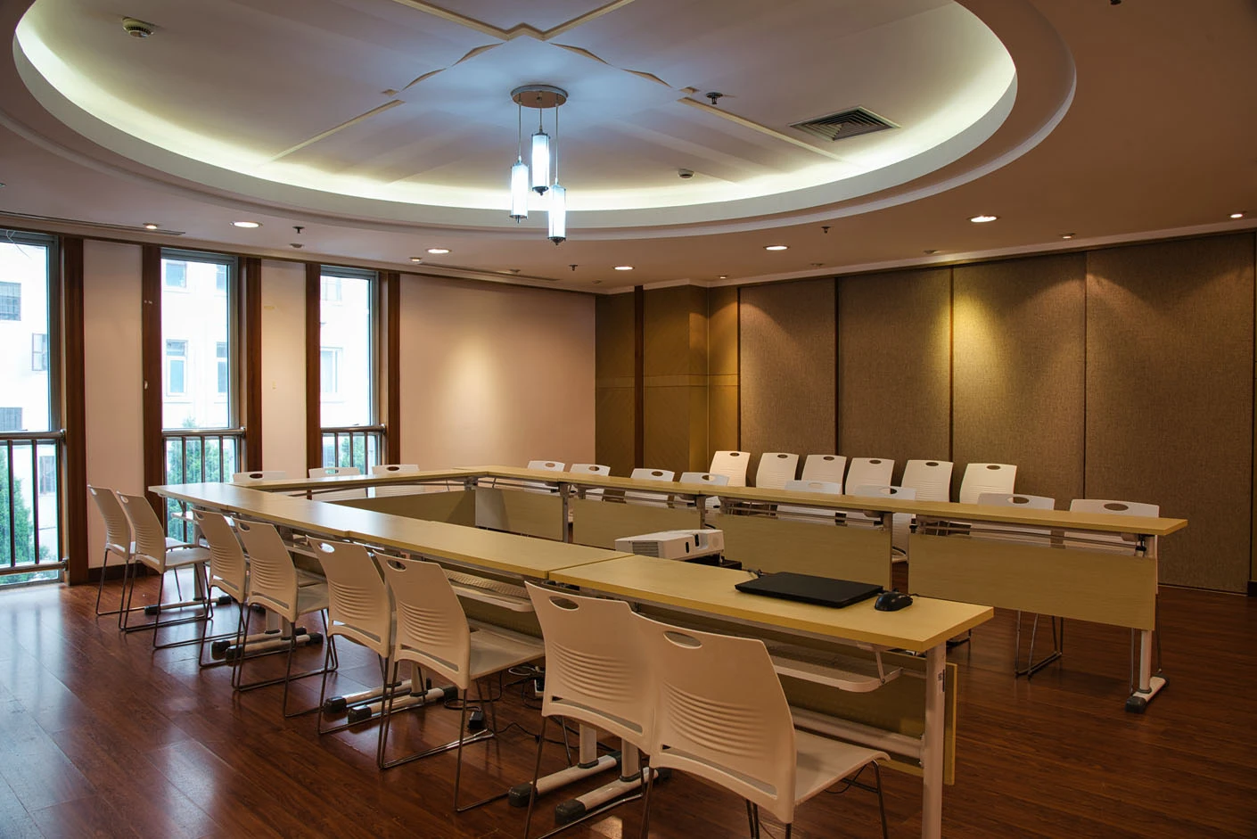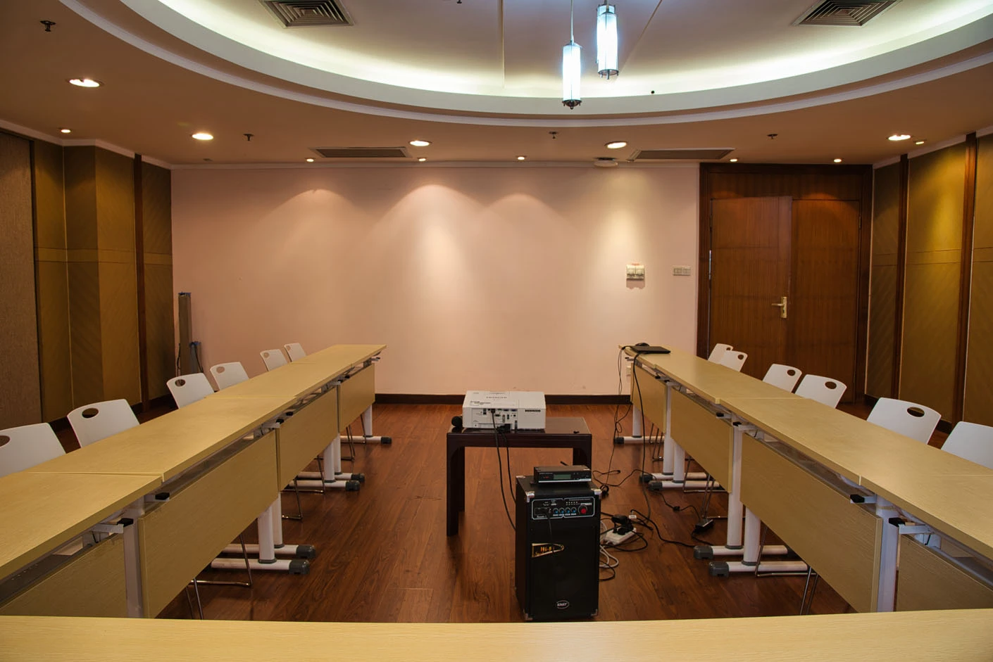 会议室地处科教楼这一承载教学、科研核心功能的建筑之内,深度依托交大医学院雄厚的学术资源、顶尖的行业口碑与规范的管理体系,为各类中小型医学研讨、专业交流、精品会议与小型培训提供高标准的场地服务。空间采用灵活可变的布局设计,可根据活动性质自由切换课桌式或圆桌式排布:课桌式适配理论授课、技能培训、资格考核等场景,保障学习与记录的便利性;圆桌式则营造平等开放的交流氛围,更适合专家研讨、项目洽谈、小组决策,真正实现“一场多用”,精准匹配不同类型活动的核心需求。