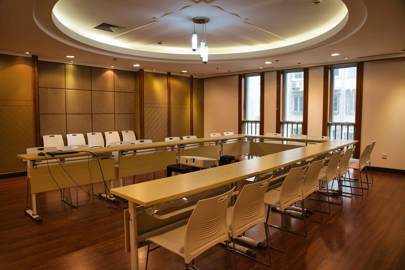 场地硬件配置对标专业会议标准,配备高清投影系统,可清晰呈现医学病例、科研数据、学术课件、实验影像等专业内容,保障演示效果精准无误;全域中央空调系统实现温湿度智能调控,四季均可提供舒适宜人的室内环境,满足长时间会议、研讨与培训的使用需求。同时,会议室坐拥黄浦核心城区的绝佳区位,交通路网密集、周边配套成熟,加之医学院本部优美静谧的校园环境,浓厚的学术气息与专业的空间体验相辅相成,为每一场活动赋予更高的品质感与专业性。