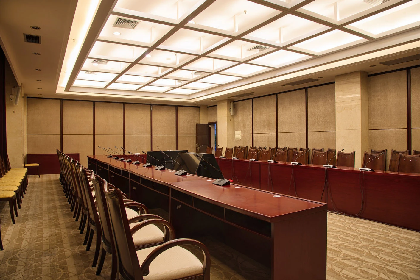 场地硬件配置全面对标专业会议标准,配备专业桌麦系统与高保真音响,确保每一处发言都清晰传递、无杂音干扰;高清投影设备搭配LED显示屏,可清晰呈现医学病例、科研数据、学术课件等专业内容,配套提词器进一步保障重要发言、学术汇报的流畅性与专业性。全域中央空调系统可精准调控室内温湿度,为长时间的会议、研讨创造舒适宜人的环境,全程保障参会人员的体验与活动效率。