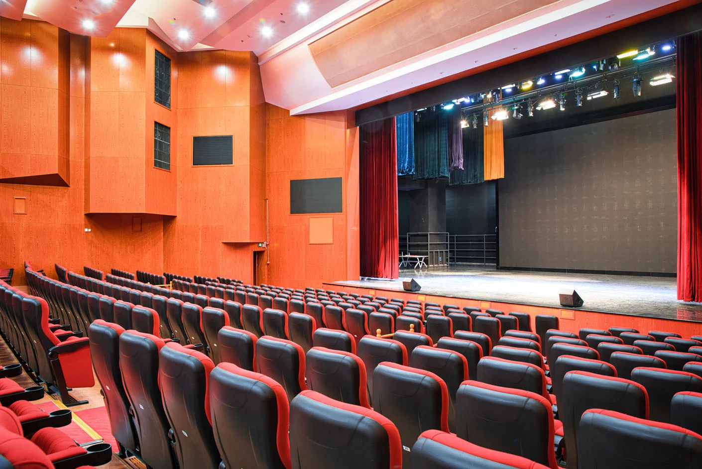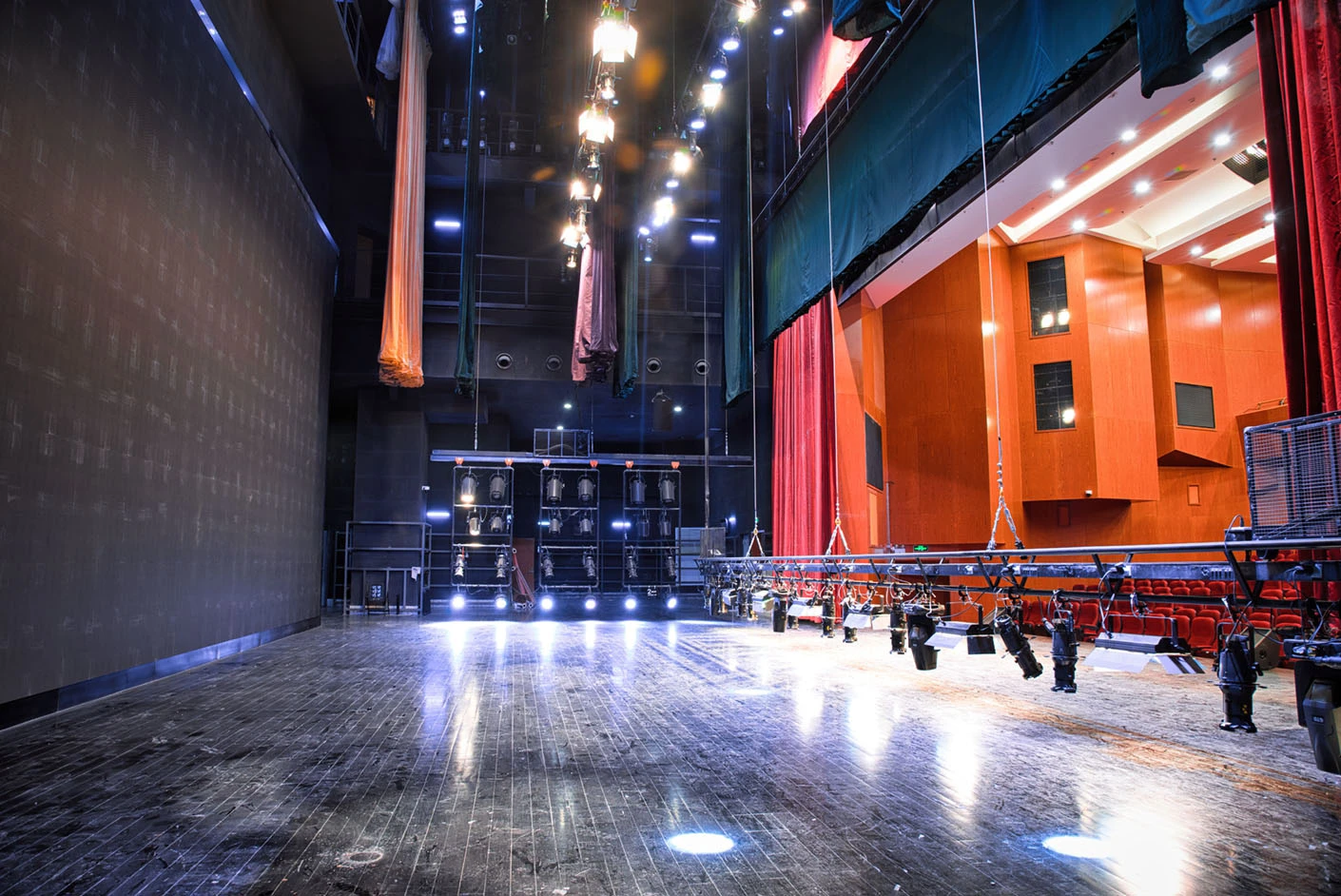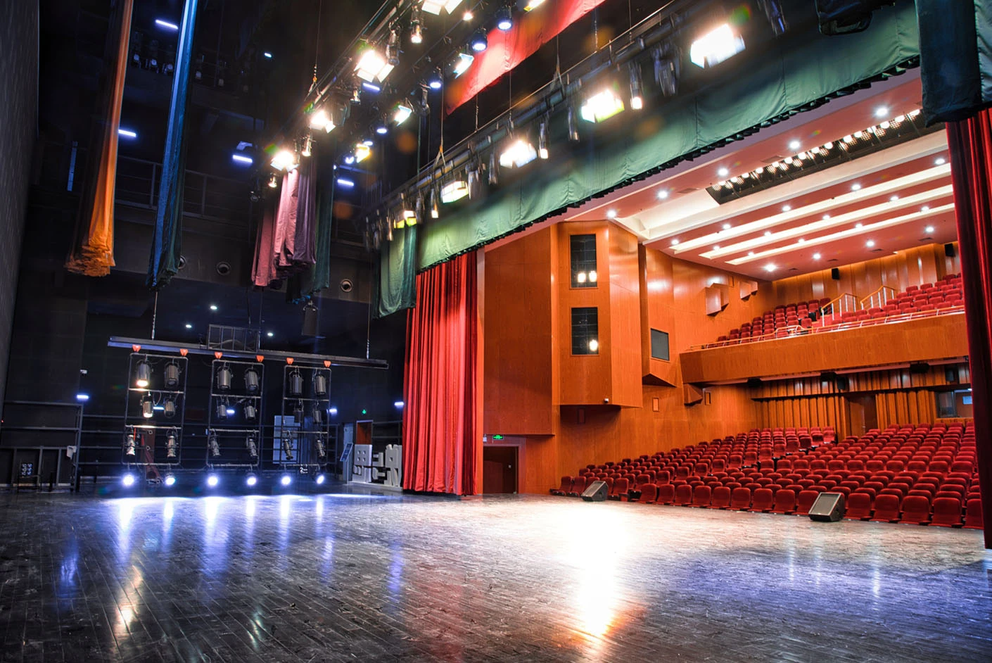 剧场采用标准镜框式舞台设计,硬件规格完全对标专业演出场馆,主舞台宽19.6米、深10.1米、高15.7米,舞台镜框口宽13.7米、高7.2米,可轻松满足话剧、音乐会、舞蹈、儿童剧等各类专业演出的空间需求。场馆配备先进的专业灯光音响系统与全套舞台机械装置,技术支撑全面且稳定,能精准适配不同类型活动的舞美与声效要求。后台配套4个专业化妆间,同时剧场所在园区配备200个地下车位,为演出团队的后台筹备与观众出行停车提供了完善便利的保障。