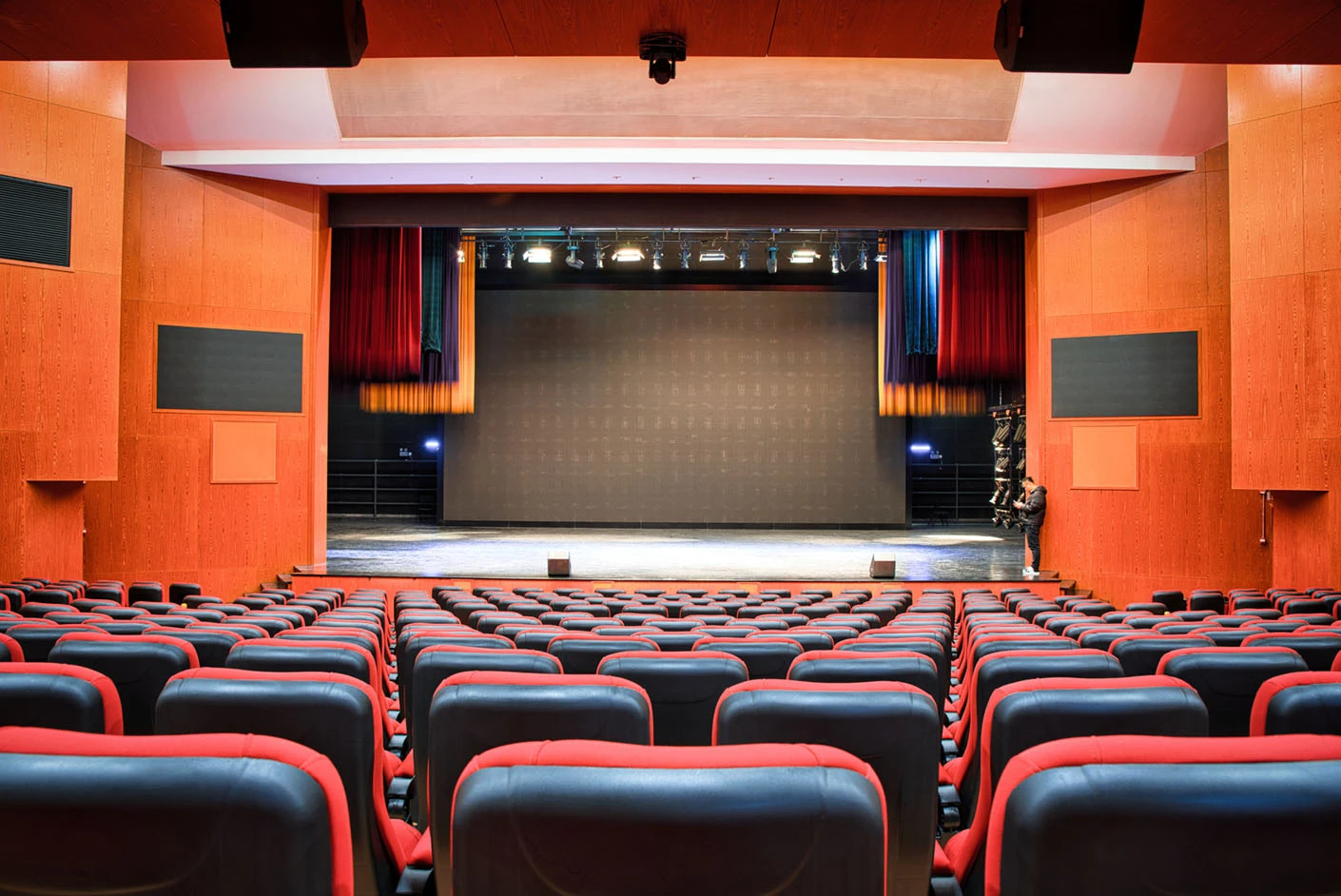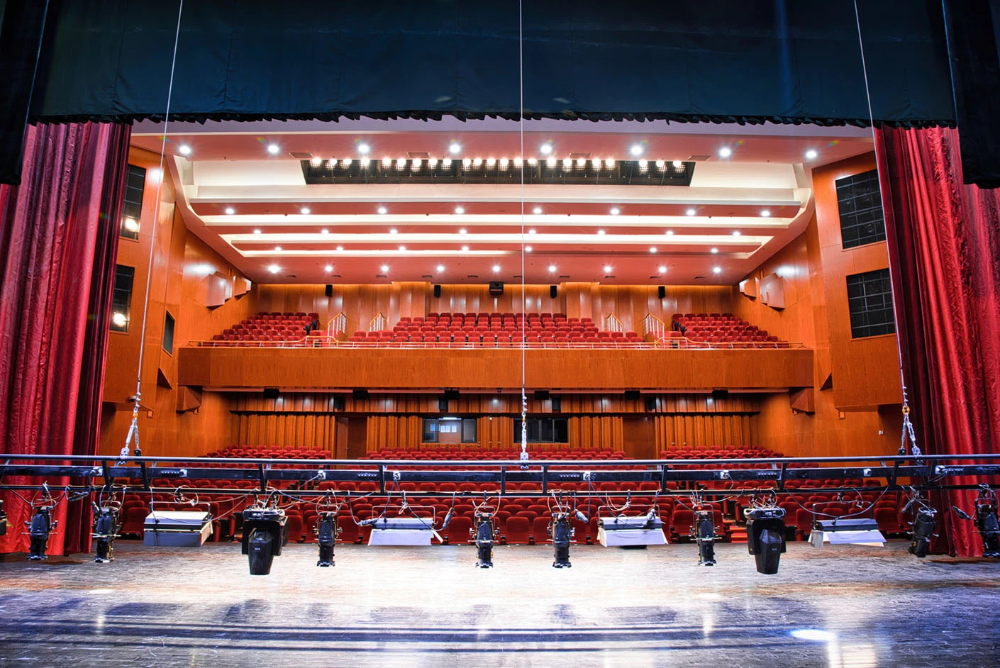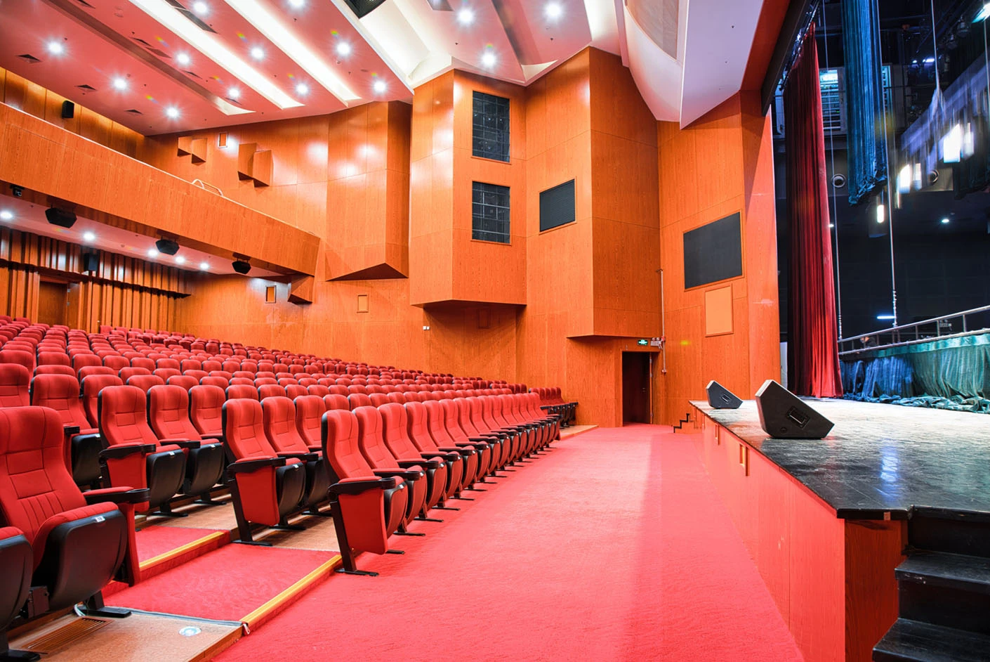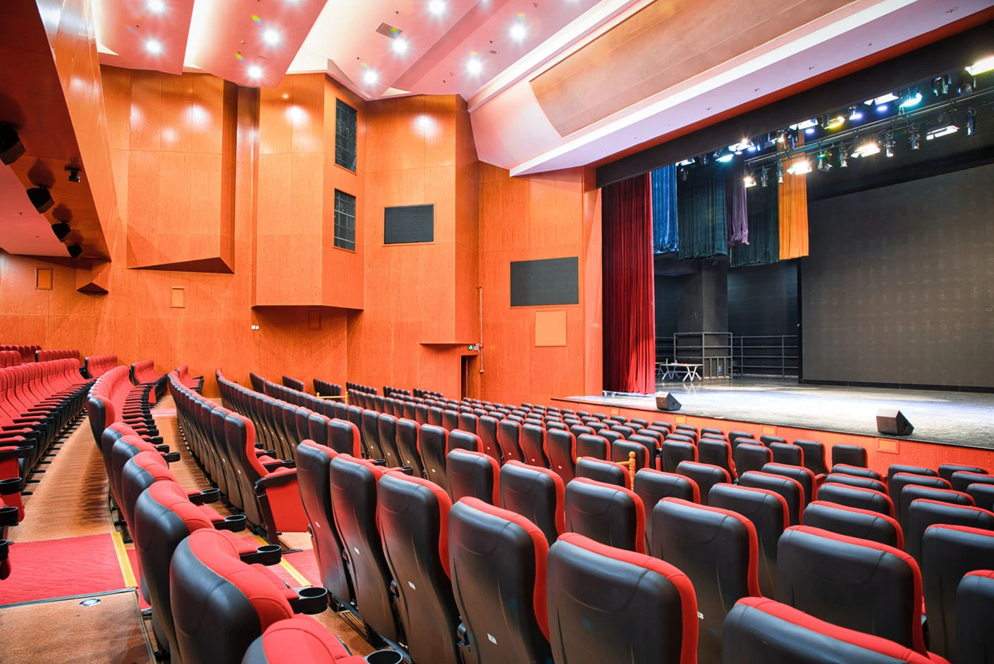 剧场采用标准镜框式舞台设计,硬件规格完全对标专业演出场馆,主舞台宽19.6米、深10.1米、高15.7米,舞台镜框口宽13.7米、高7.2米,可轻松满足话剧、音乐会、舞蹈、儿童剧等各类专业演出的空间需求。场馆配备先进的专业灯光音响系统与全套舞台机械装置,技术支撑全面且稳定,能精准适配不同类型活动的舞美与声效要求。后台配套4个专业化妆间,同时剧场所在园区配备200个地下车位,为演出团队的后台筹备与观众出行停车提供了完善便利的保障。