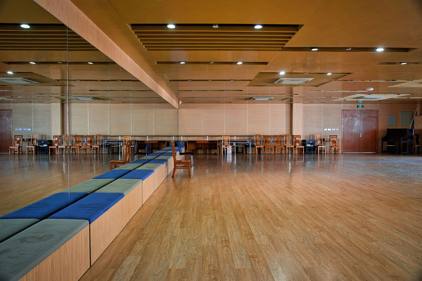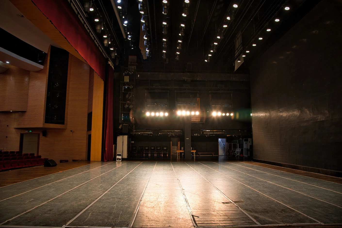 观众厅共设置13排、总计397个座位,座椅采用人体工学设计,久坐舒适且间距合理,观众席采用阶梯式排布,保证每一个座位都拥有开阔无遮挡的观演视角。剧场后台配套功能完善,设有专业化妆间、道具室等辅助空间,设施齐全、布局合理,为演出团队的妆造、候场、道具存放提供完备的后台保障,充分满足专业演出与大型活动的全流程需求。