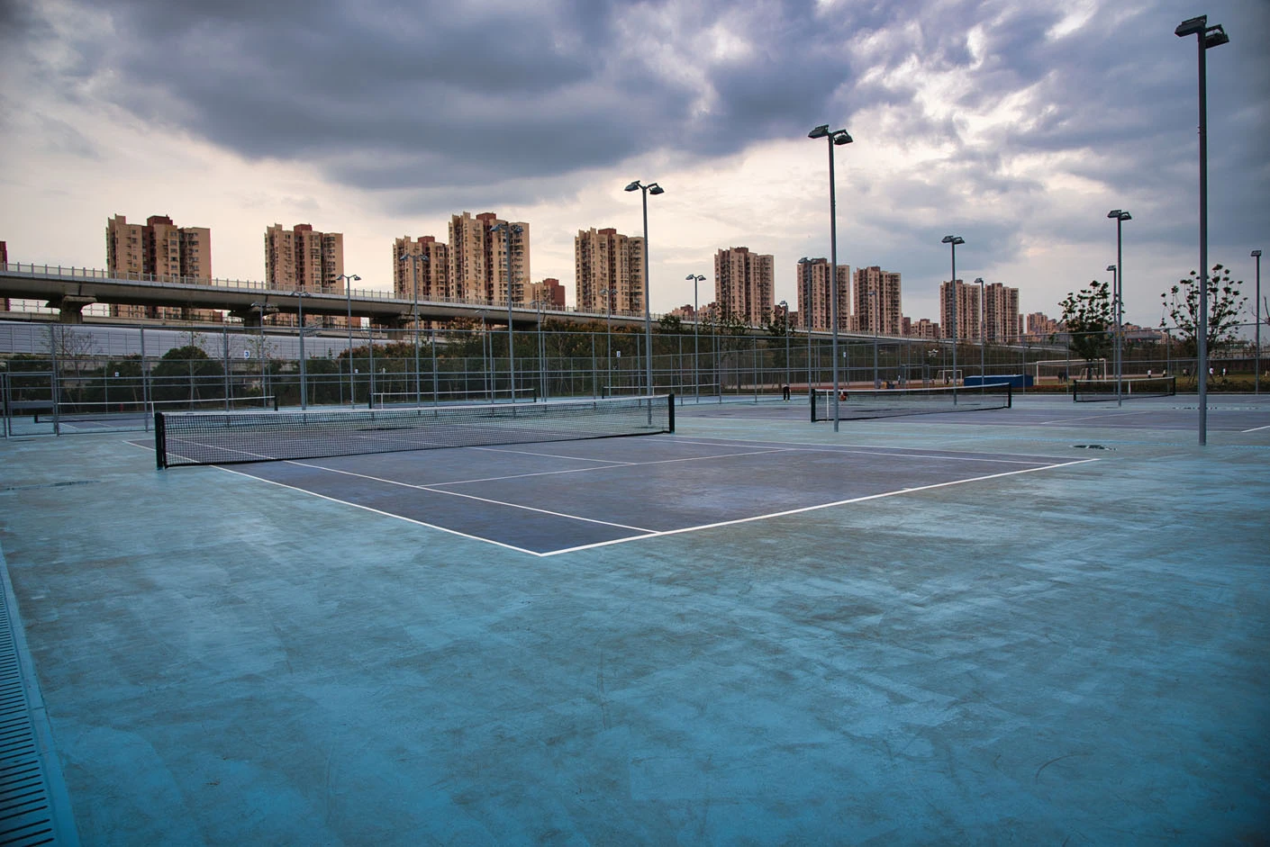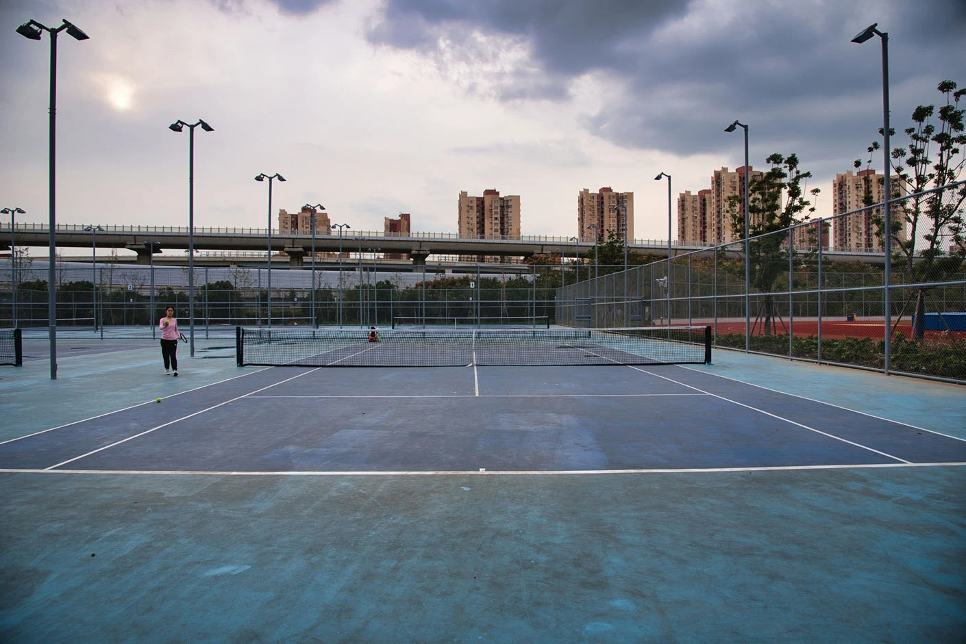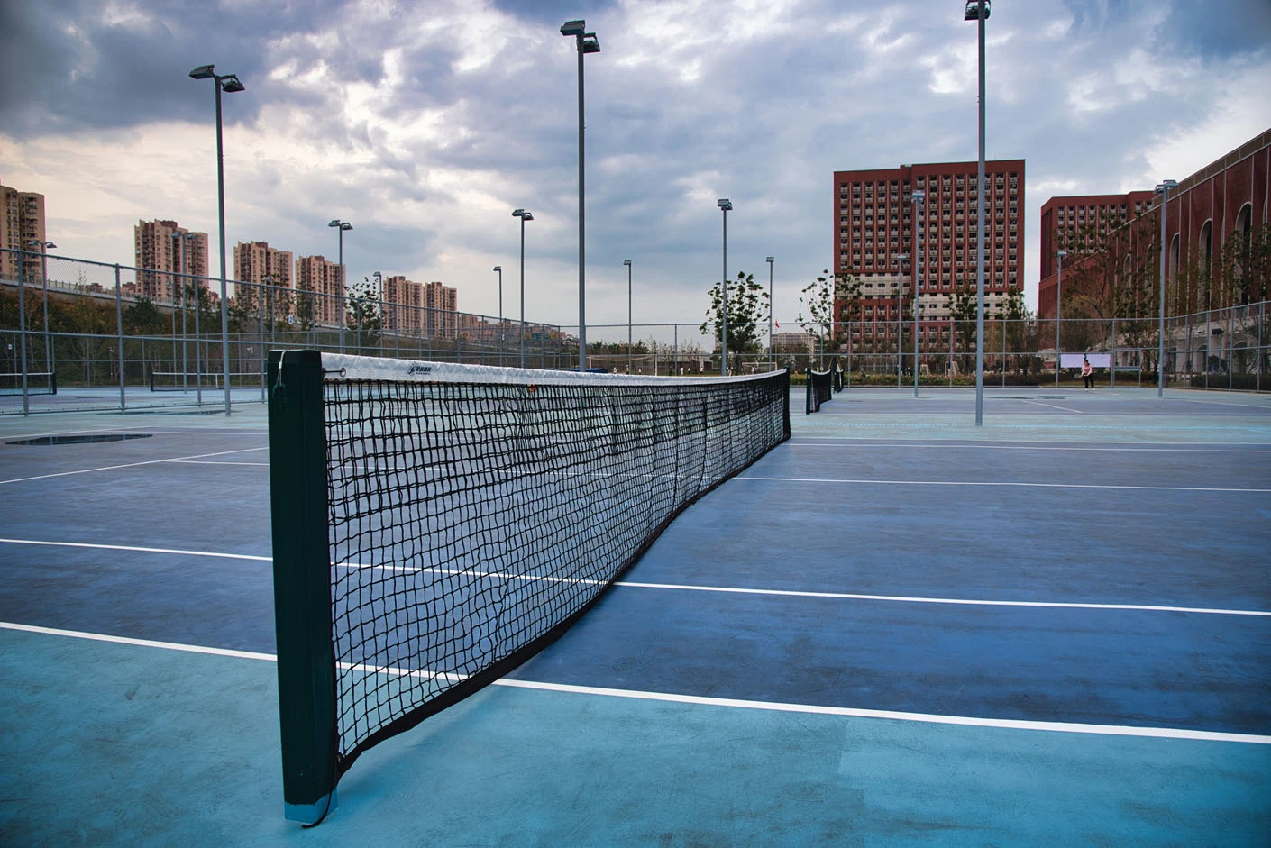 网球场由**6片标准室外专业网球场**组成,整体采用国际比赛标准建造,场地材质符合专业赛事与教学训练双重要求,回弹稳定、脚感舒适,能有效降低运动损伤风险,充分保障运动的专业性与安全性。场地配备全包围专业围网系统,既可清晰划分运动区域,防止网球飞出场外,又能隔绝外部干扰,让运动者专注投入训练与比赛,同时营造秩序井然、氛围纯粹的运动环境。场地选址科学合理,地处校区核心运动板块,与综合体育馆、体育场、学生食堂等核心功能区紧密相邻,形成集运动、学习、生活于一体的便捷校园运动生活圈,师生可步行快速抵达,让网球运动无缝融入日常节奏。