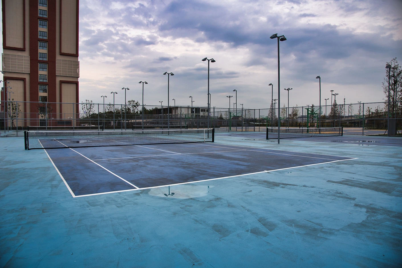 作为上海交通大学医学院浦东校区打造“国际化、现代化、智慧化绿色可持续发展校园”的重要一环,网球场的规划建设深度贴合医学生高强度的学习科研特点,不仅承担日常体育教学、校队训练与师生健身的核心功能,更为严谨枯燥的医学学习生活提供了理想的身心调节空间,帮助师生在专注学业之余,通过网球运动舒缓压力、锻炼专注力、培养优雅气质与竞技精神。场地周边环境优美,绿植环绕,配套设施完善,设有专属休息区域与专业照明系统,既能够满足专业赛事、校队集训等高规格需求,也适配日常休闲健身、师生友谊交流等多元场景,充分体现了医学院校对师生身心健康与全面发展的高度重视与全方位支持。场地实行规范化管理,建立专业定期保养机制,专人负责场地、围网、照明等设施的检修维护,确保场地始终处于最佳使用状态,为师生提供持久稳定的高品质运动保障。