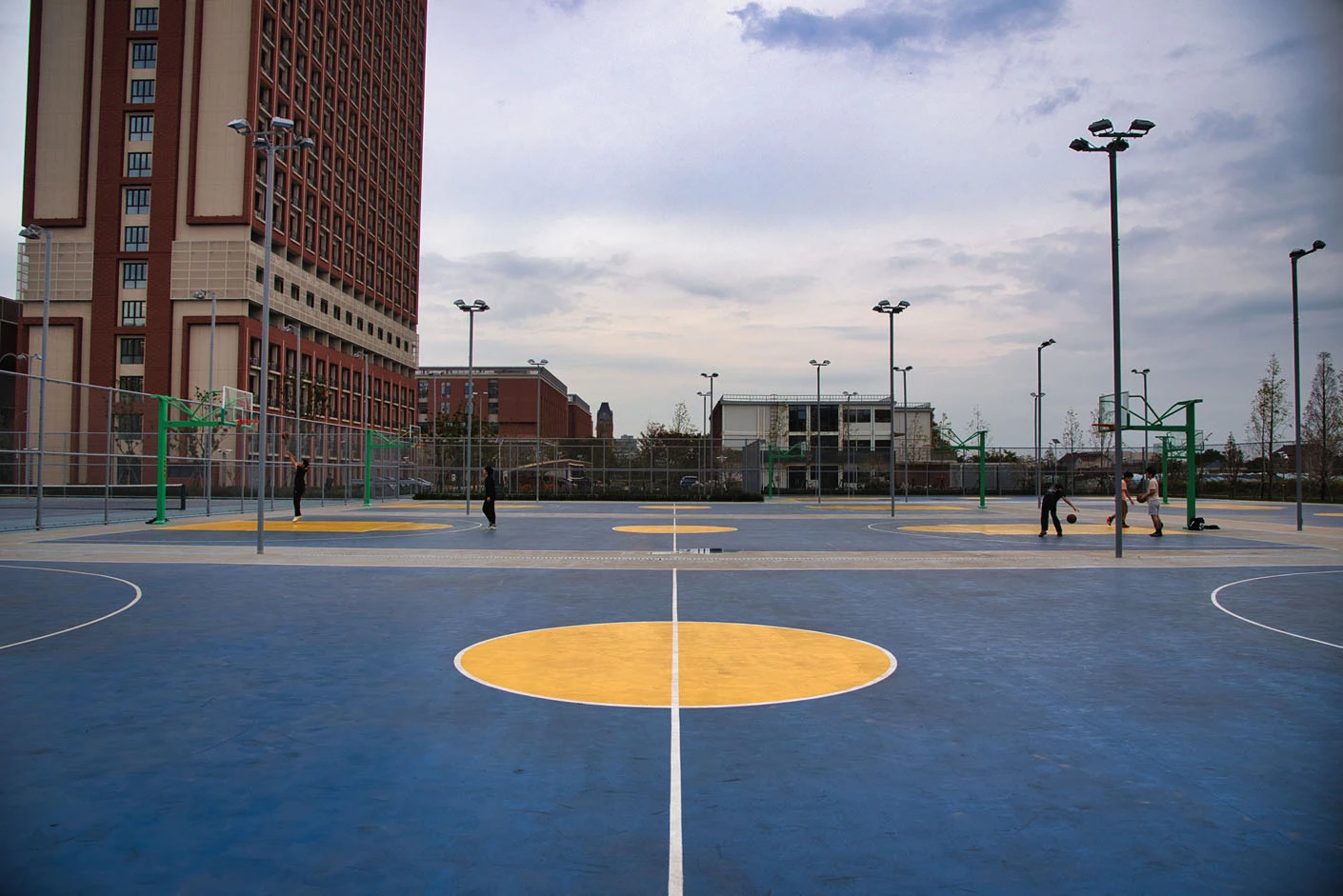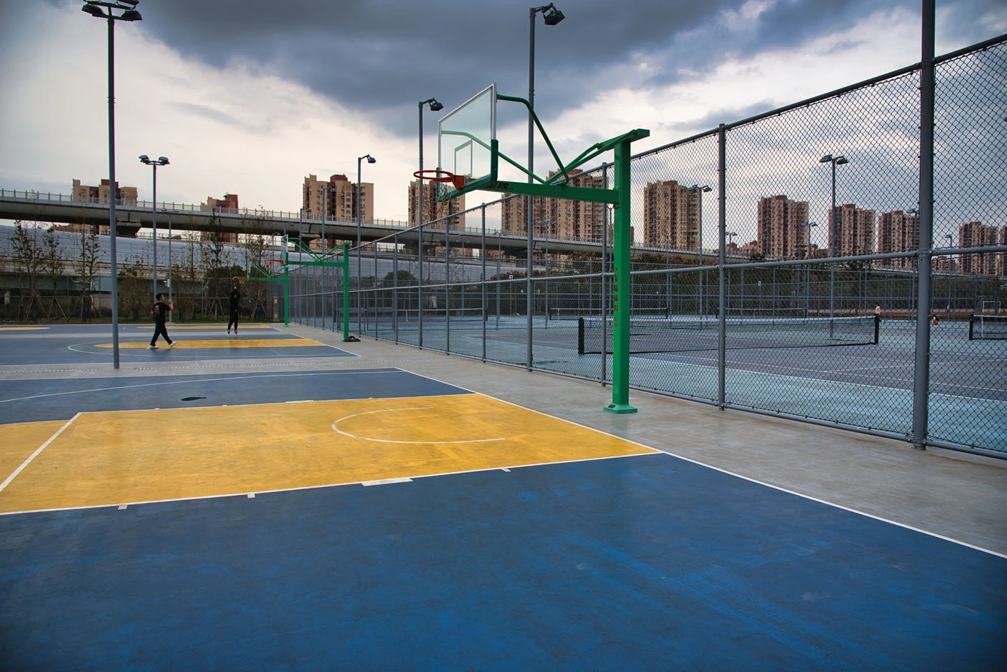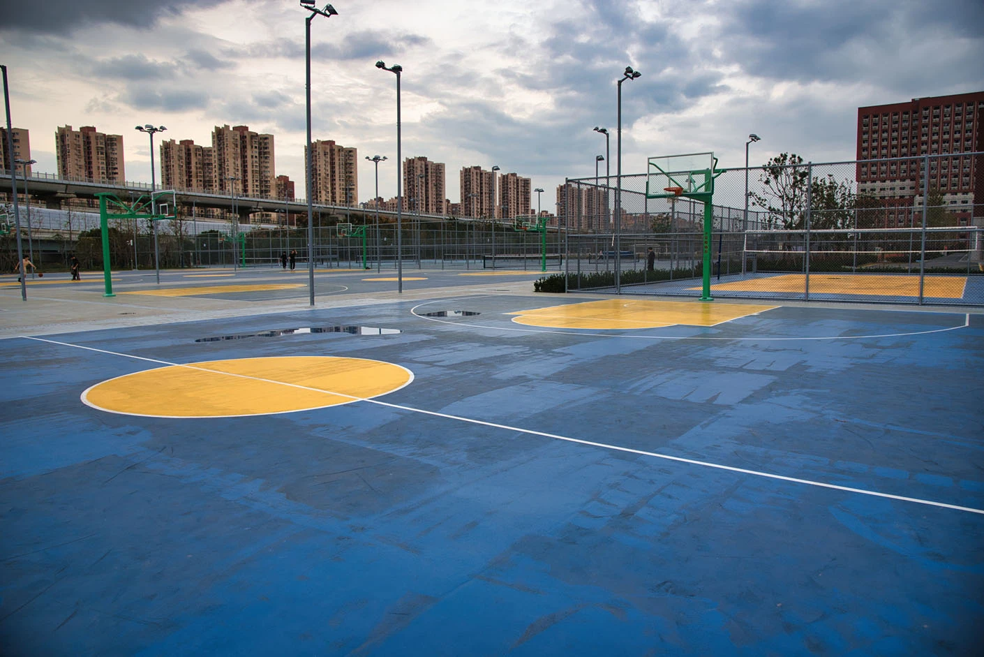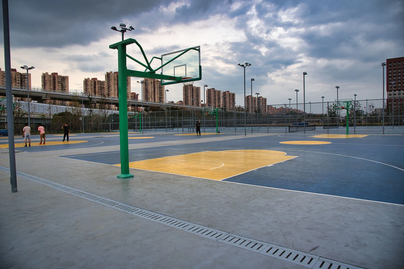 上海交通大学医学院浦东校区篮球场坐落于浦东国际医学园区内,是上海交通大学医学院新建校区体育设施体系的核心组成部分。作为校区重要的运动阵地,这片篮球场既承载着交大医学院“博极医源,精勤不倦”的百年学术精神,又传承了上海交通大学重视体育育人、促进师生全面发展的优良传统,是医学严谨态度与体育拼搏精神深度融合的优质载体。篮球场依托医学院深厚的学术底蕴与国际化办学视野,秉承“智慧化、生态化”的校园建设理念,严格按照世界一流医学院标准打造,是兼具专业性、实用性与美观性的现代化室外运动空间,为全校师生提供了高品质的篮球运动与健身交流平台。