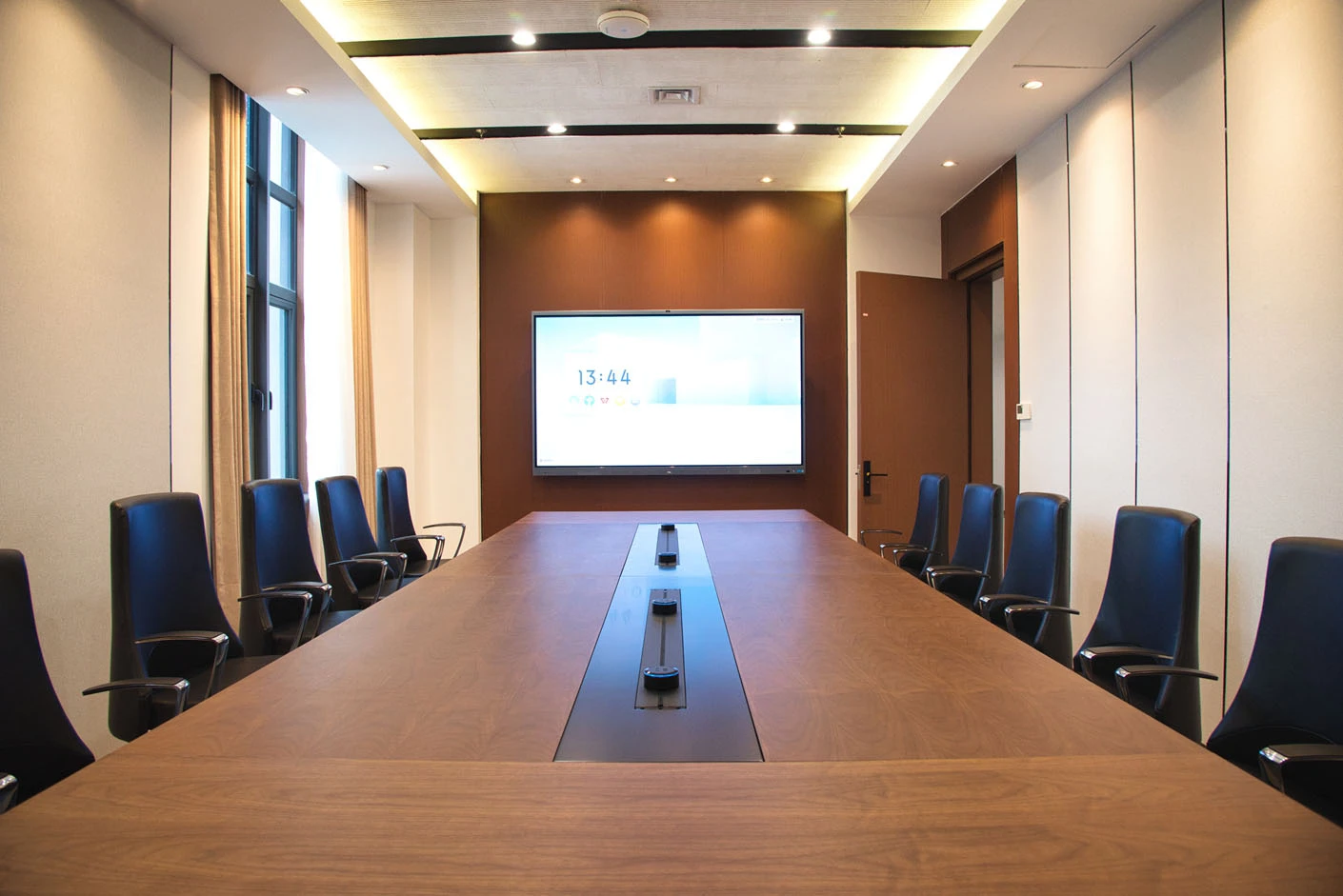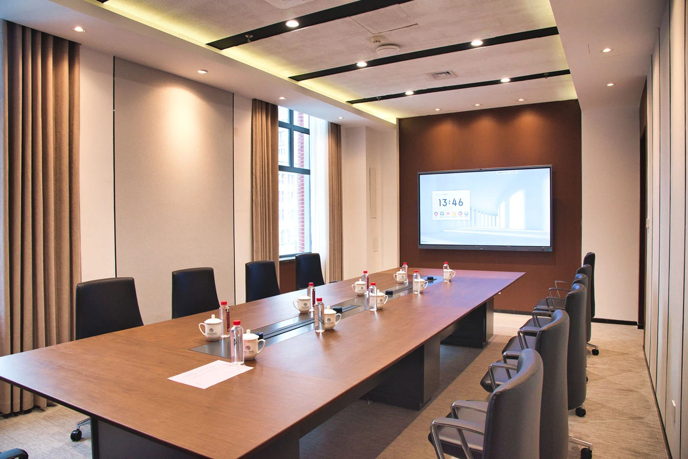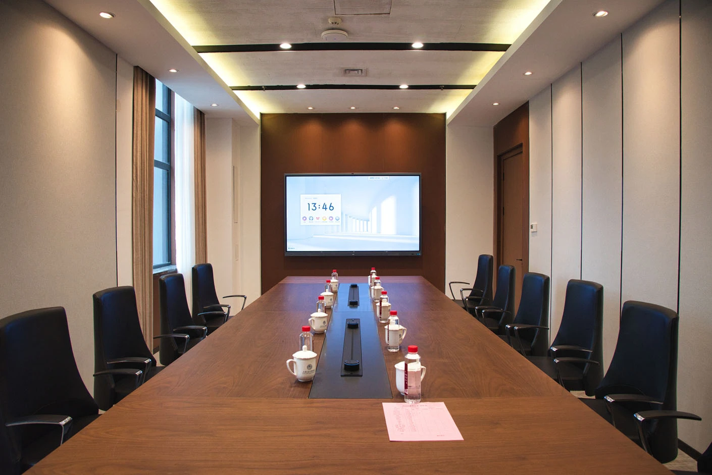 单间场地空间规划紧凑合理,尺寸约为7米×3米,层高约3米,空间尺度适中,既有效保障会议的私密性与专注度,又为每位参会者提供舒适宽松的活动空间,避免局促感。室内硬件配置专业齐全,配备高清LED显示屏与专业音响系统,音视频传输清晰稳定,同时搭载高效中央空调系统,可精准调控室内温度,持续营造舒适宜人的会议环境,为各类小型会议、专题研讨与远程沟通提供全方位的技术支撑与环境保障,满足现代小型会议的多样化需求。