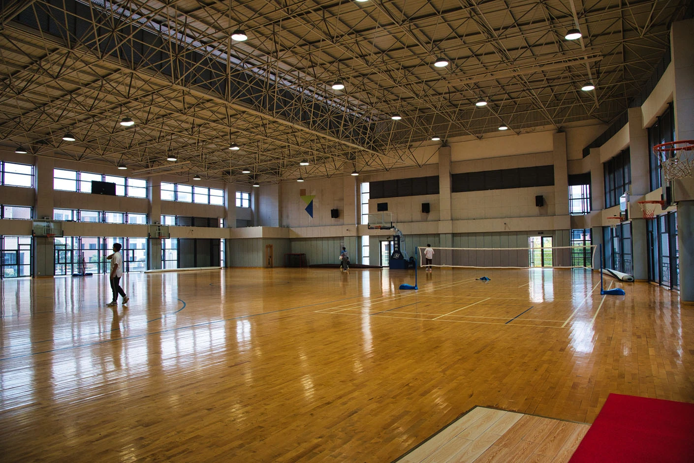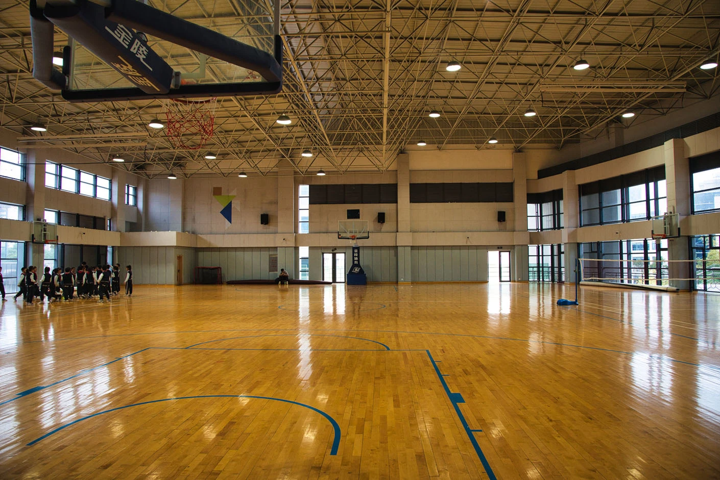 场馆内部空间规整开阔,采用**专业运动木地板**铺设,地面弹性优良、防滑减震,能有效缓冲运动冲击,降低运动损伤风险,为篮球、羽毛球等运动提供优质的运动体验。馆内配备**专业音响系统与高清电子屏**,可精准满足赛事播报、比分展示、活动宣传等多元需求,搭配科学的空间布局,确保各类体育竞技与文化活动都能顺利推进、高效开展。作为拥有二十年办学积淀的知名学府,尚德实验学校凭借科学规范的管理、严谨扎实的教学与丰硕的育人成果,在社会各界收获广泛赞誉,先后荣获“上海市文明单位”“上海市中小学行为规范示范学校”等二十余项重量级荣誉称号,这些办学成就也为二号篮球馆的场地品质、服务标准与管理规范提供了强有力的背书。