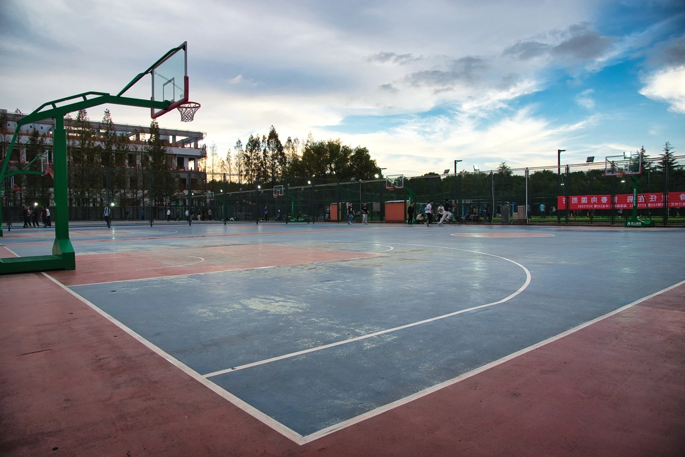 10 片标准场地 + 夜间照明,畅享全天候篮球运动与集体活动乐趣