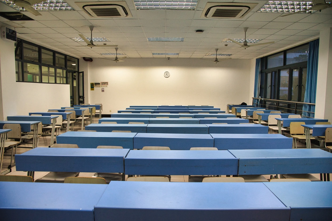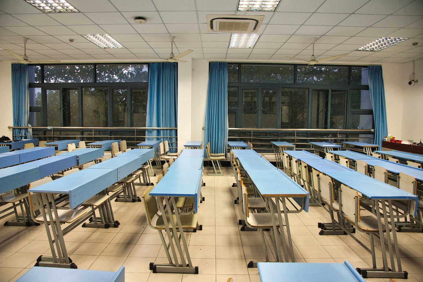 在环境舒适度方面,教室安装高效吸顶空调,可根据季节变化快速调节室内温度,实现冷暖精准切换;搭配壁挂式风扇,在春秋温和季节促进室内空气流通,双系统协同作用,满足不同天气条件下的使用需求,让师生在舒适的温度环境中开展教学活动。教室的日常管理规范有序,学校后勤部门安排专人定期对投影仪、音响、吊麦、空调等设备进行检修与维护,及时排查故障隐患,确保各类设施始终处于最佳运行状态;保洁人员在每次使用后及时清理教室卫生,擦拭桌面、规整座椅,为下一次使用提供整洁干净的环境。